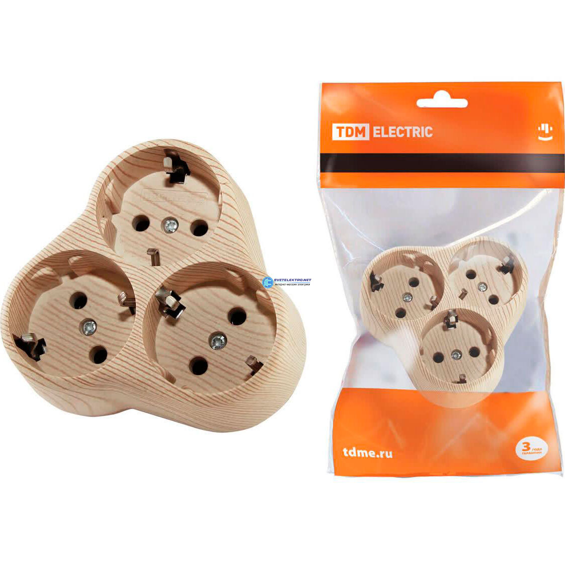 Блок на 3 гнезда 2П+З круглый 16А 250B ""Эко"" (сосна), код SQ1806-0077, производитель TDM
