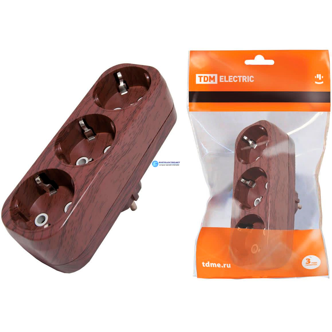Блок на 3 гнезда 2П б/з плоский 6А 250B "Эко" (бук), код SQ1806-0080, производитель TDM