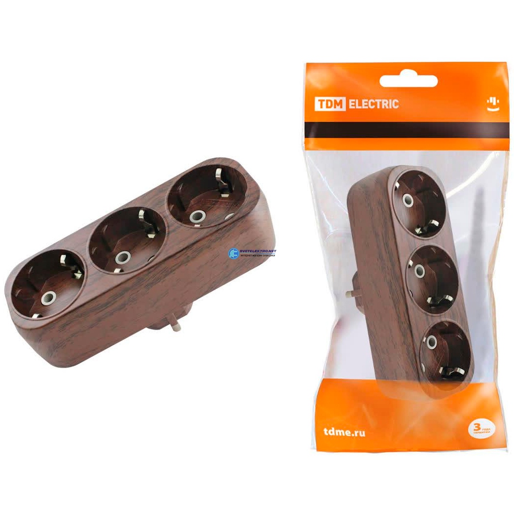 Блок на 3 гнезда 2П+З плоский 16А 250B "Эко" (бук), код SQ1806-0081, производитель TDM