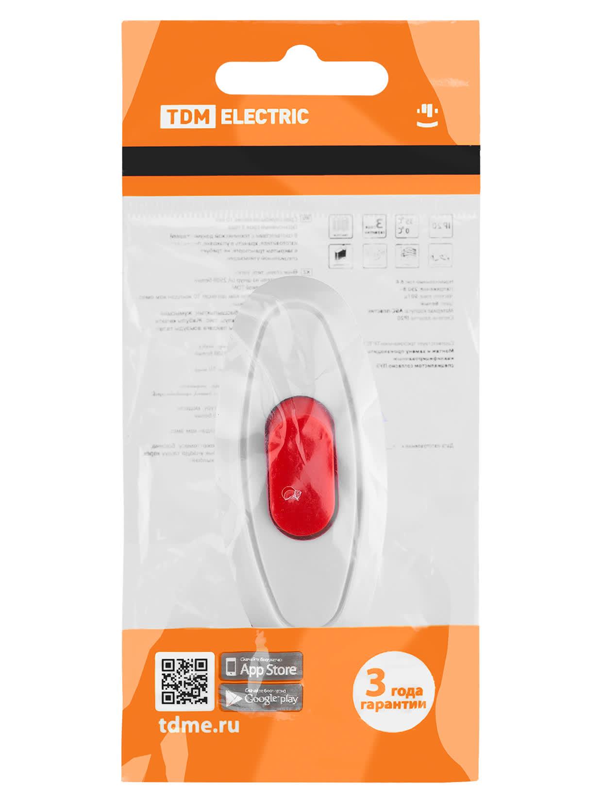 Выключатель на шнур 6А 250В белый с красной кнопкой, код SQ1806-0221, производитель TDM