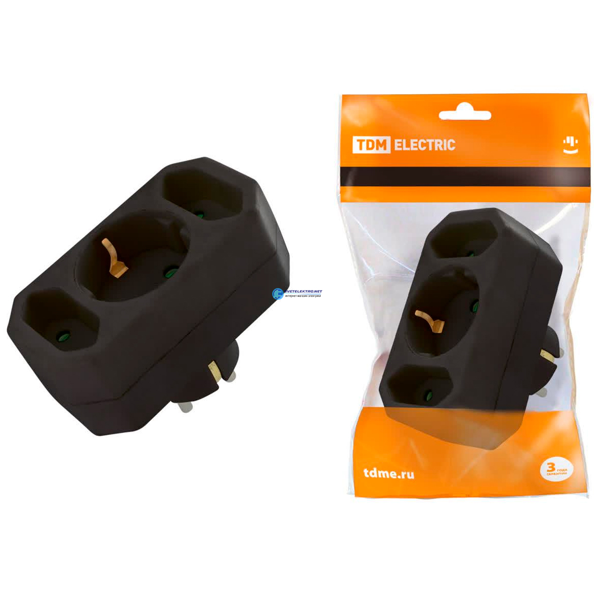 Блок на 3 гнезда: 1x2П+3 16 А + 2х2П 2,5 А под плоскую вилку 250 B черный SQ1806-0301 TDM