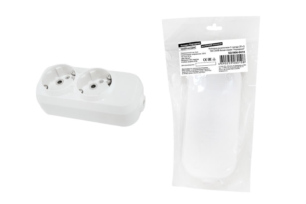 Колодка розеточная 2 гнезда 2П+З 16А 250В белая серии "Народная", код SQ1806-0414, производитель TDM