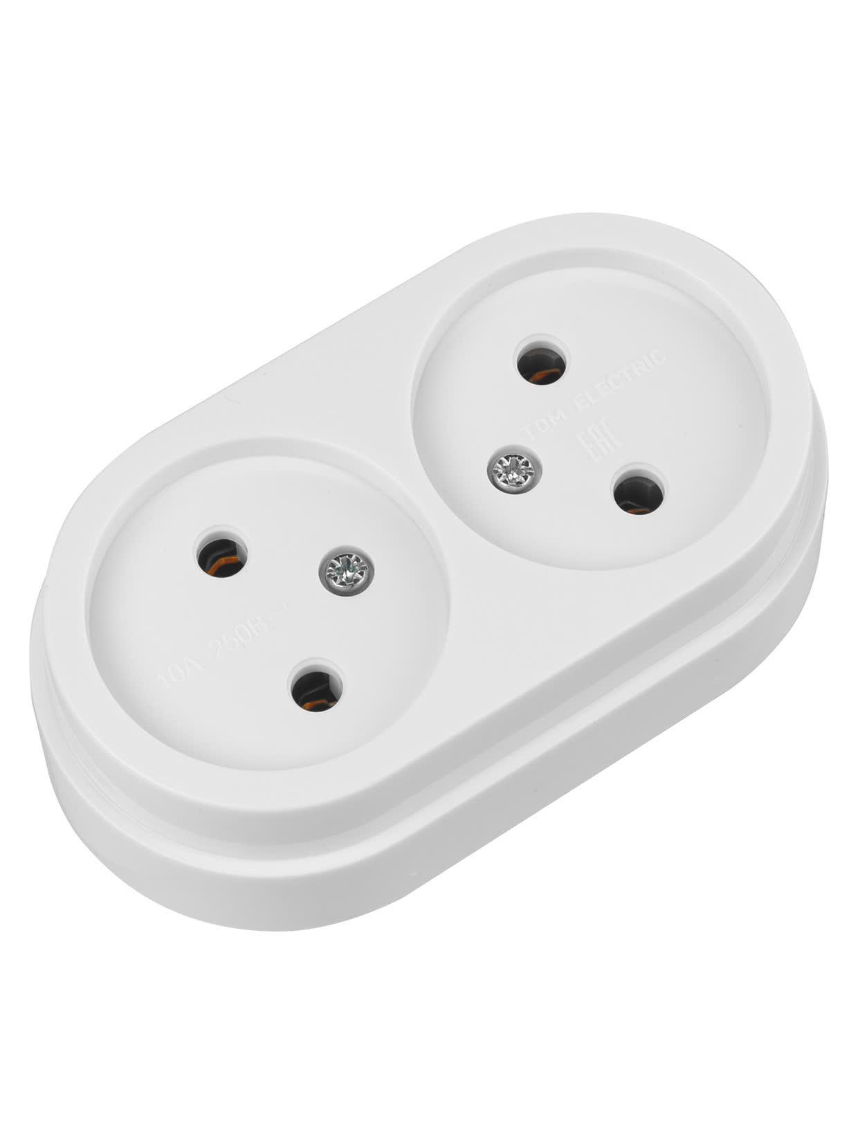 Розетка двойная 2П открытой установки IP20 10А белая "Ретро", код SQ1806-0529, производитель TDM
