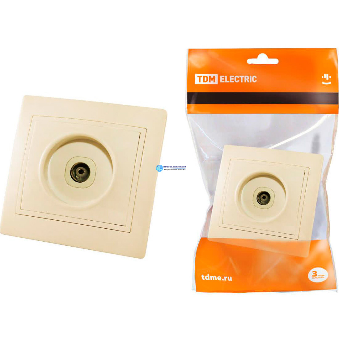 Розетка телевизионная простая (0-2400МГц, ''мама'') слоновая кость ''Таймыр'', код SQ1814-0122, производитель TDM