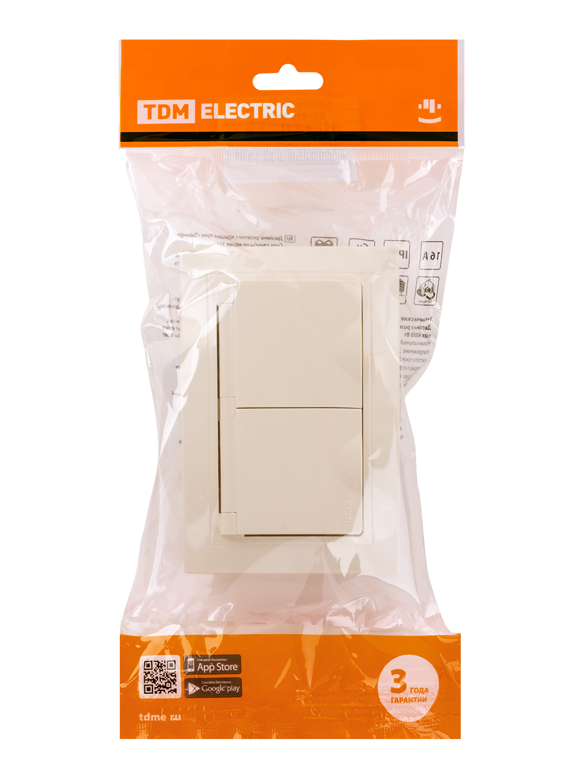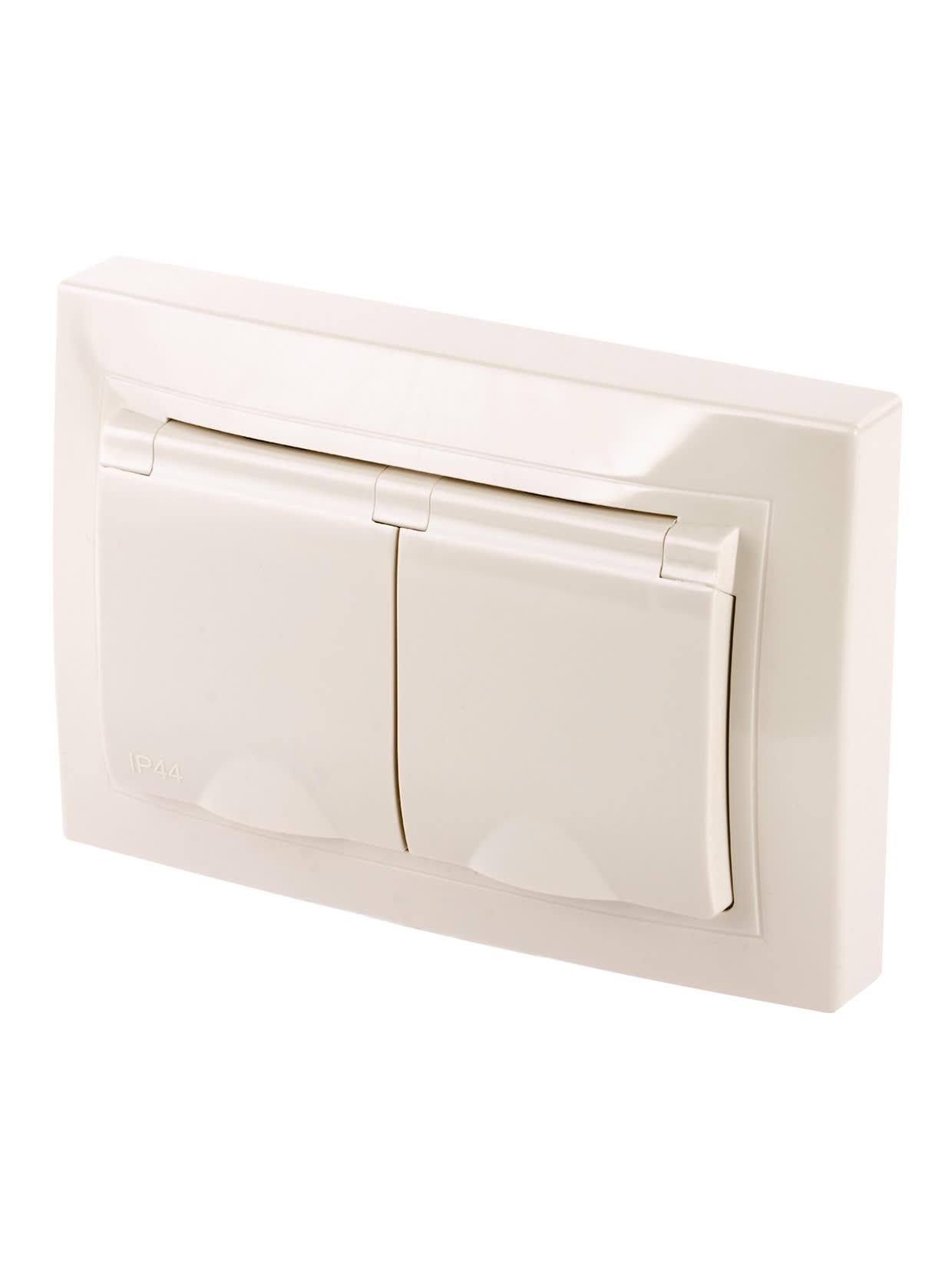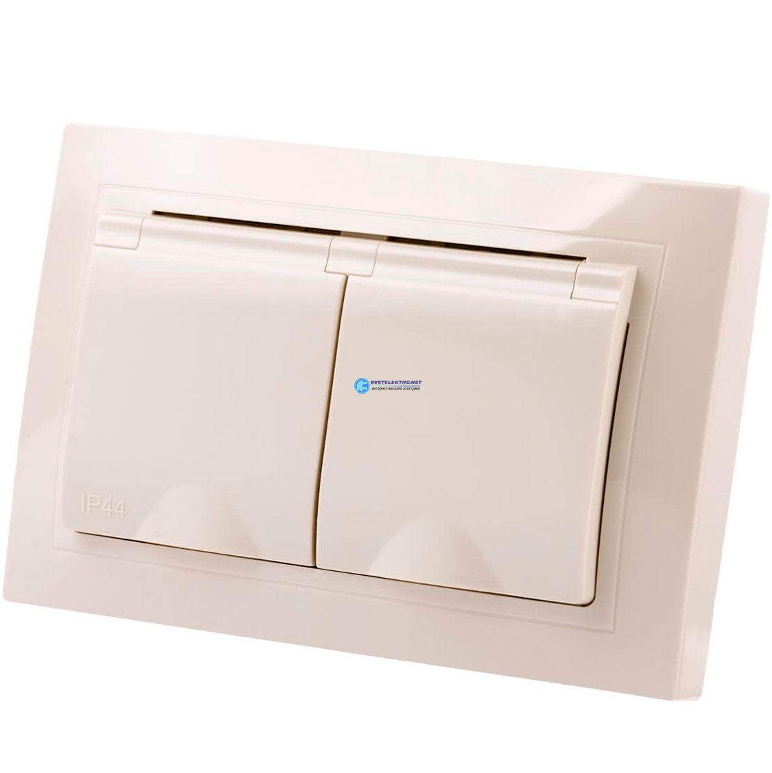 Розетка двойная 2П+З с защ. шт. и крышкой 16А 250В IP44 сл. кость "Таймыр", код SQ1814-0176, производитель TDM