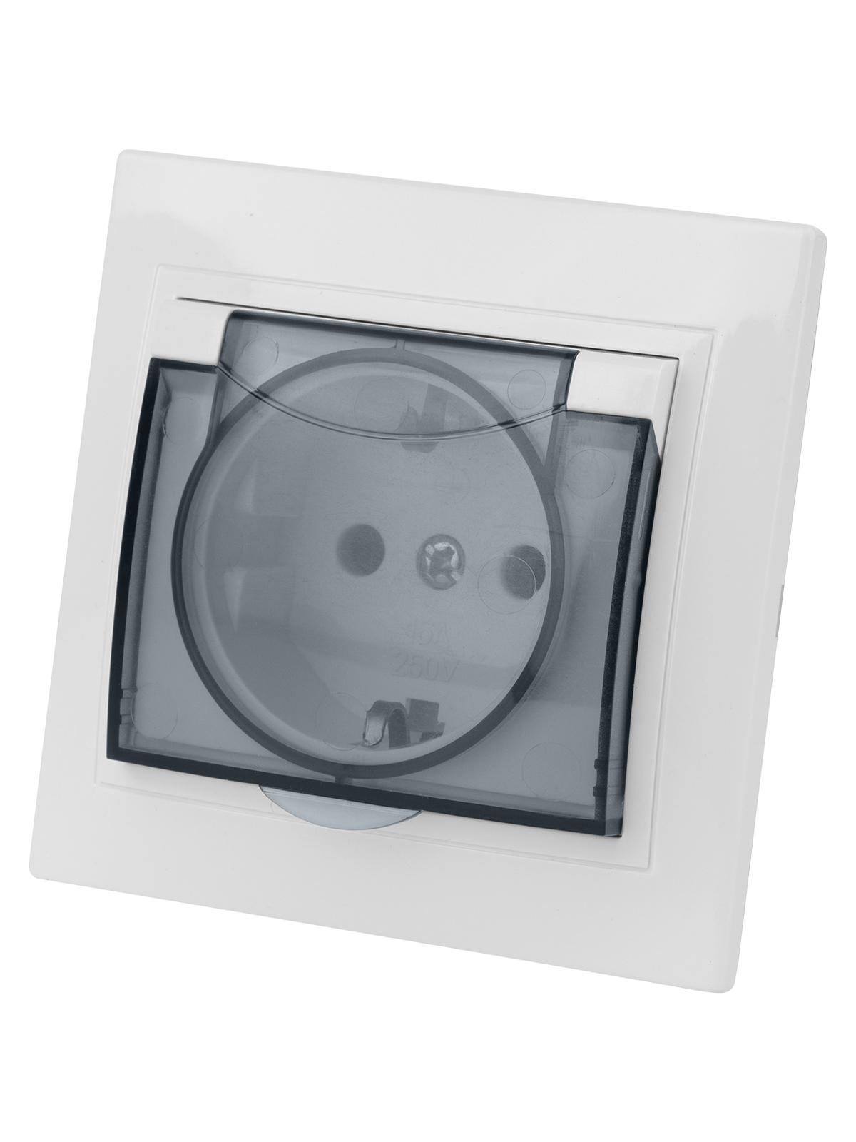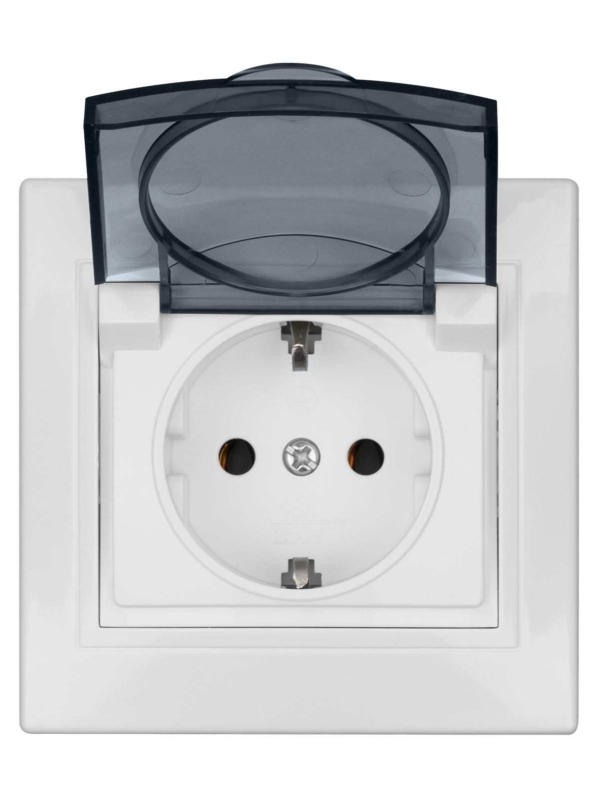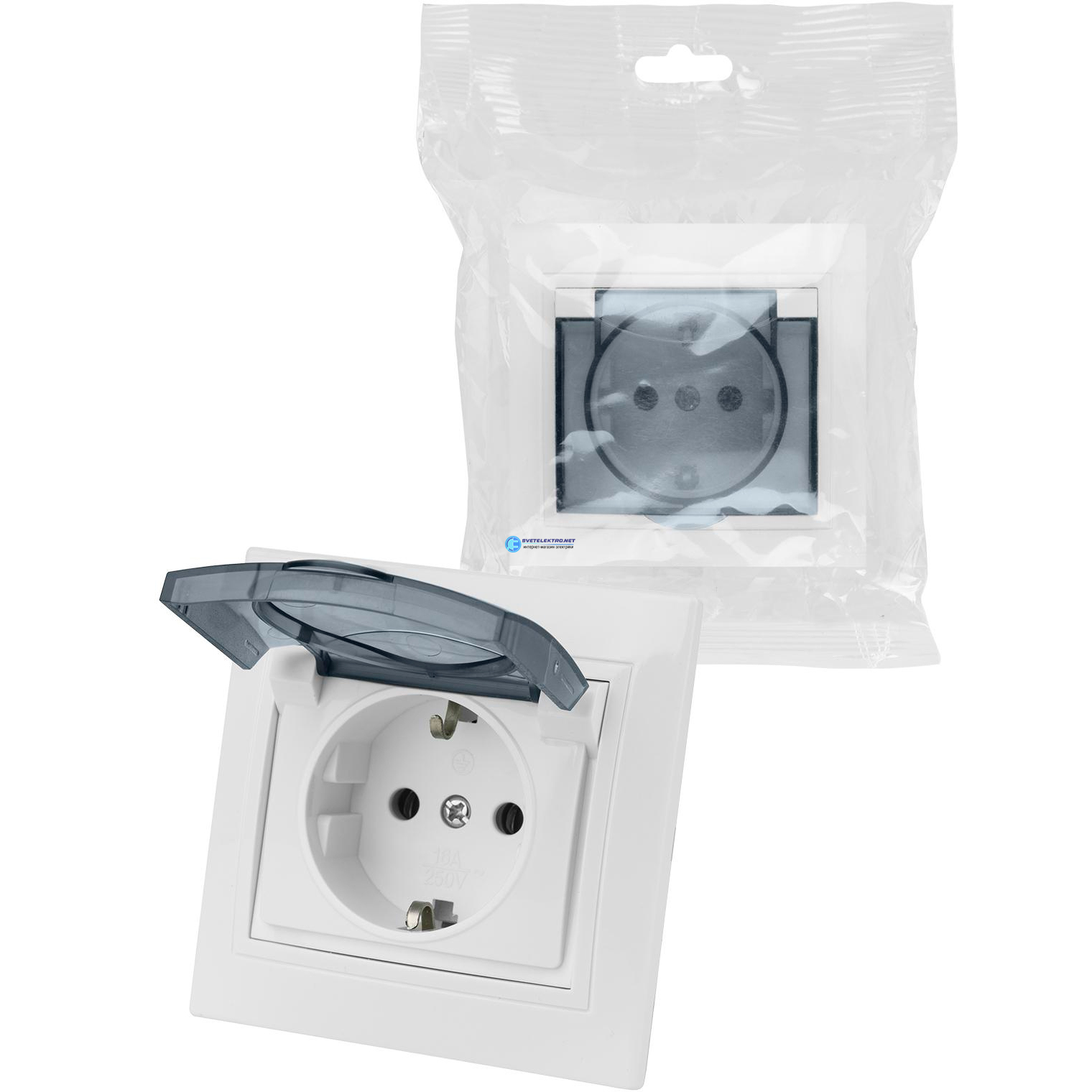 Розетка 2П+З с крышкой 16А 250В IP44 белая "Таймыр" (бакелит, пром.упак), код SQ1814-0590, производитель TDM