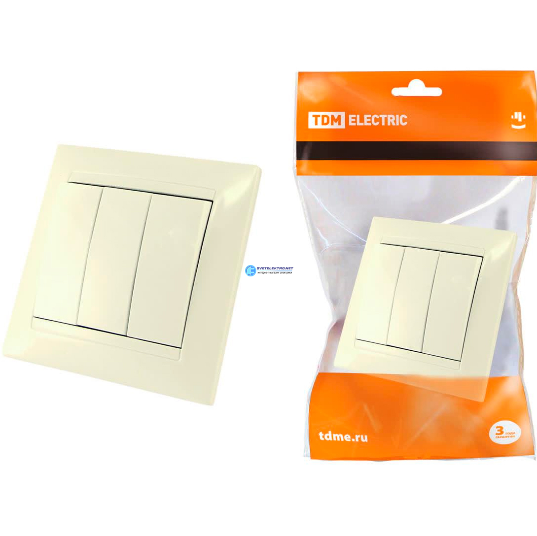 Выключатель 3-х кл. 10А сл. кость "Лама", код SQ1815-0103, производитель TDM