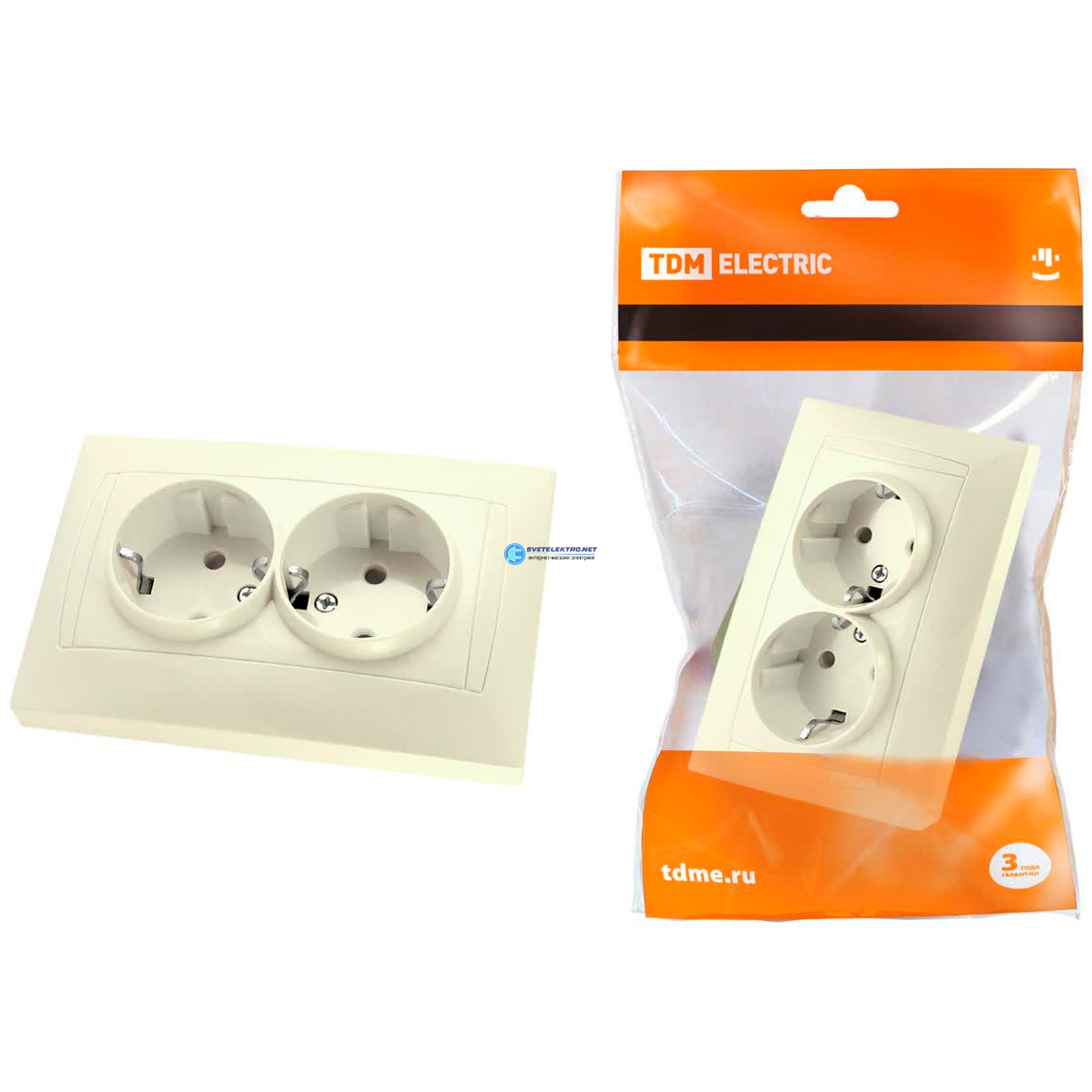 Розетка двойная 2П+З 16А 250В с защ. шт. сл. кость "Лама", код SQ1815-0113, производитель TDM
