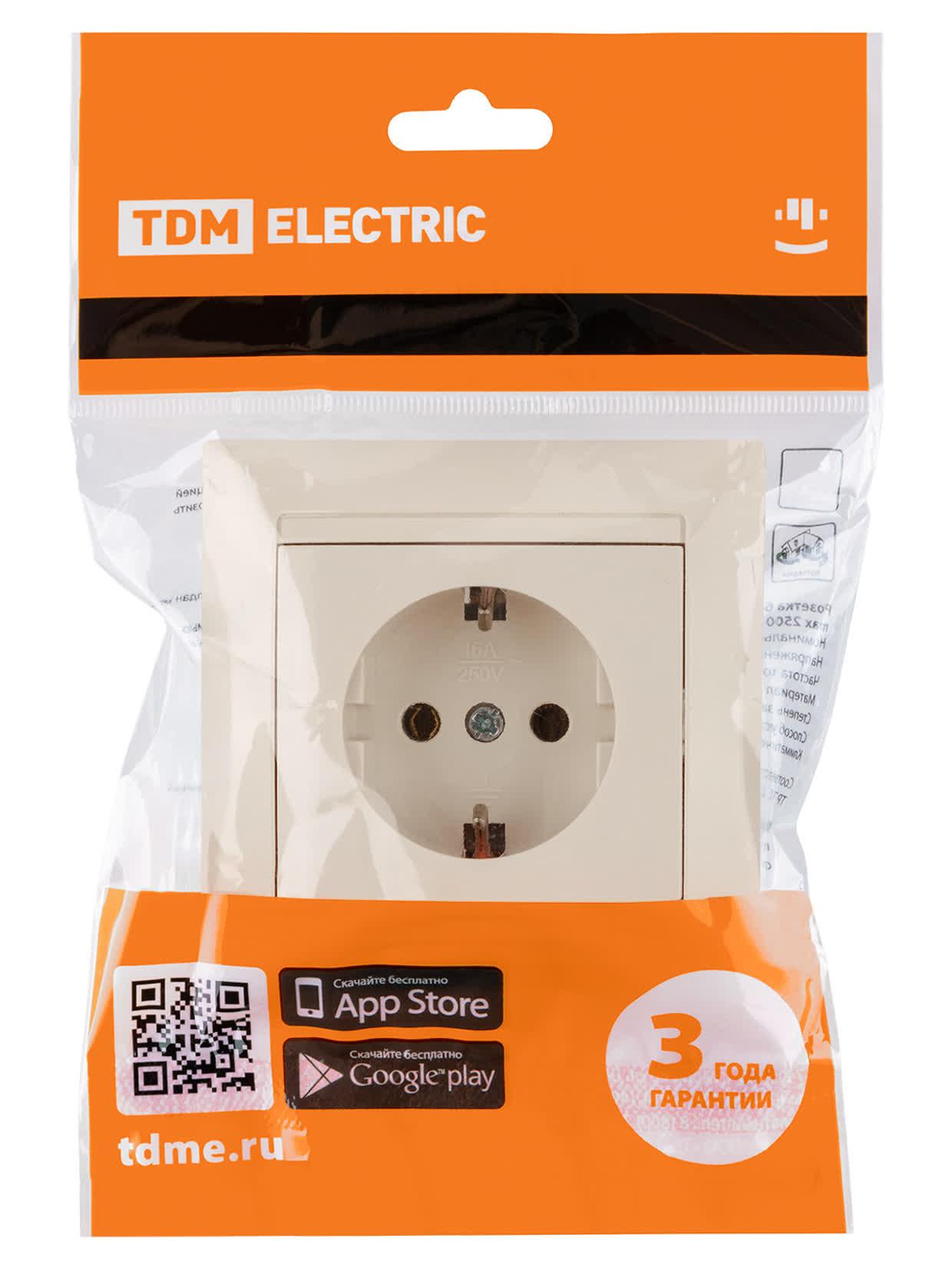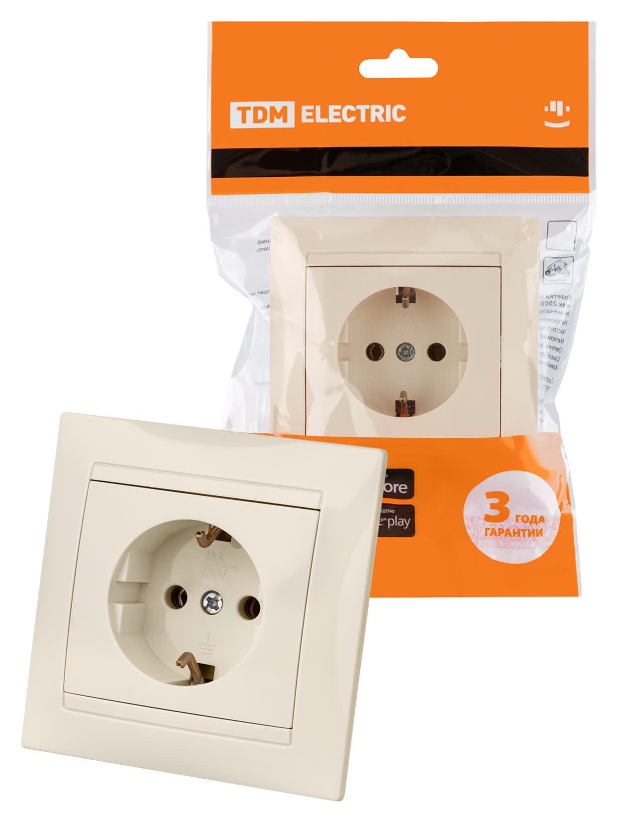 Розетка 2П+З 16А 250В сл. кость "Лама", код SQ1815-0123, производитель TDM