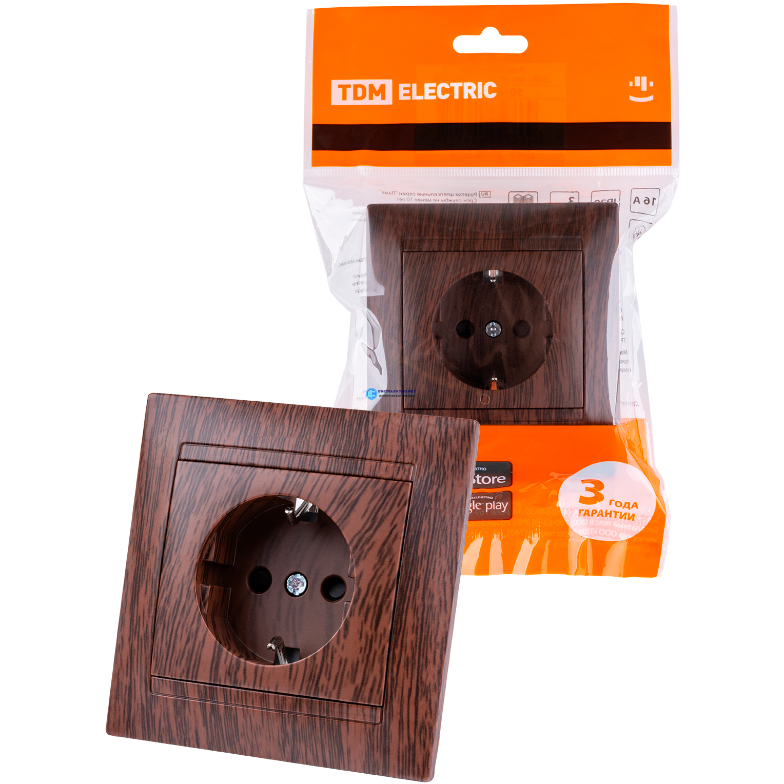 Розетка 2П+З 16А 250В с защ. шт. венге Лама TDM SQ1815-0411 TDM