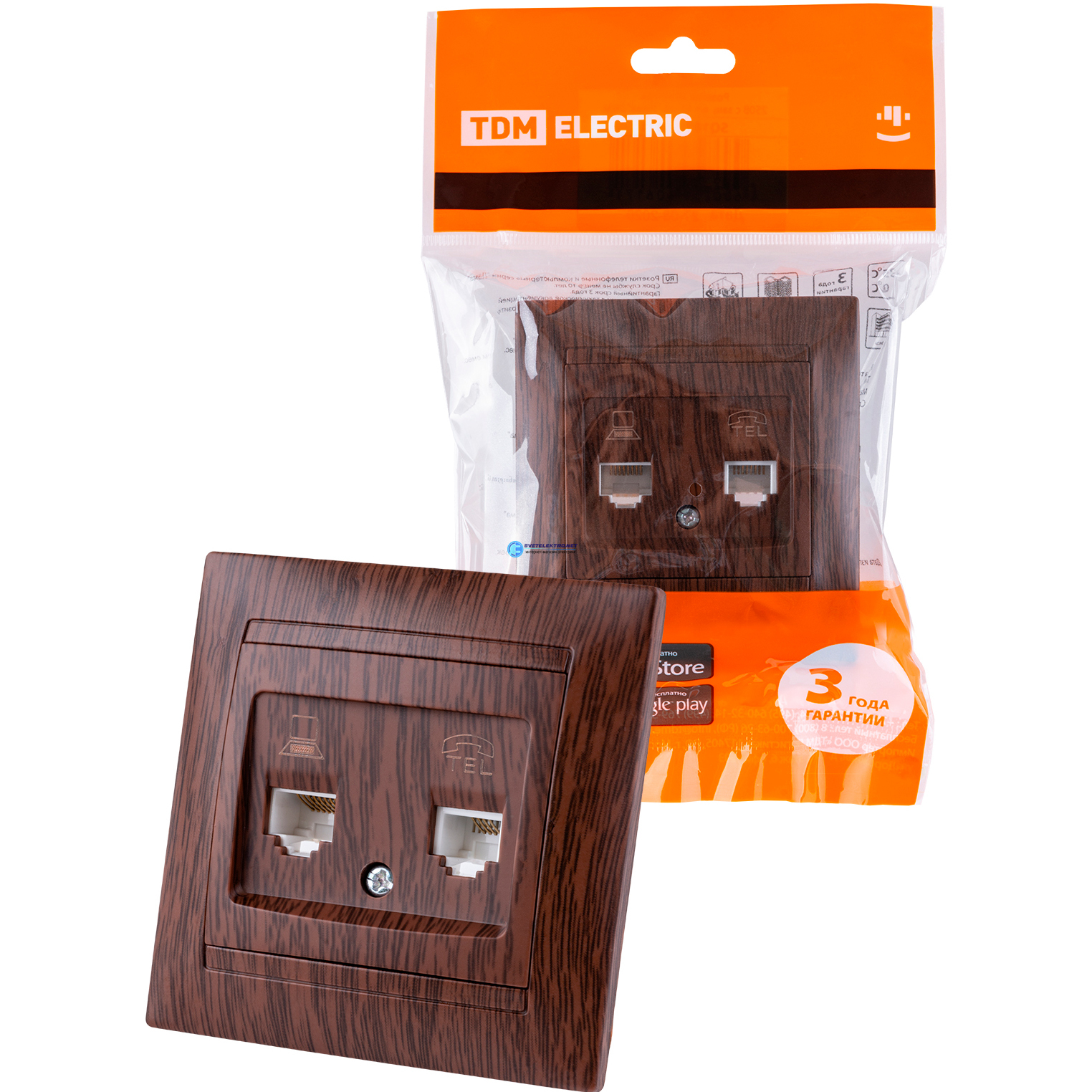 Розетка телефонная RJ11 + компьютерная RJ45 венге Лама, код SQ1815-0419, производитель TDM