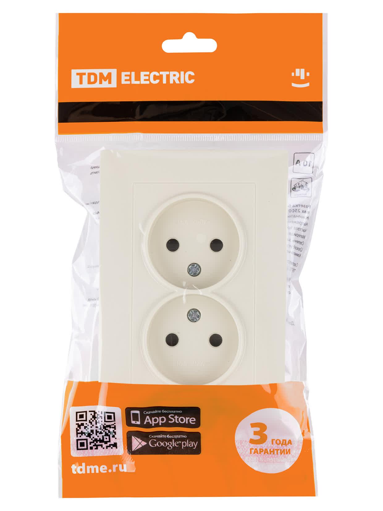 Розетка двойная 2П 10А 250В с защ. шт. сл. кость "Сенеж", код SQ1816-0135, производитель TDM