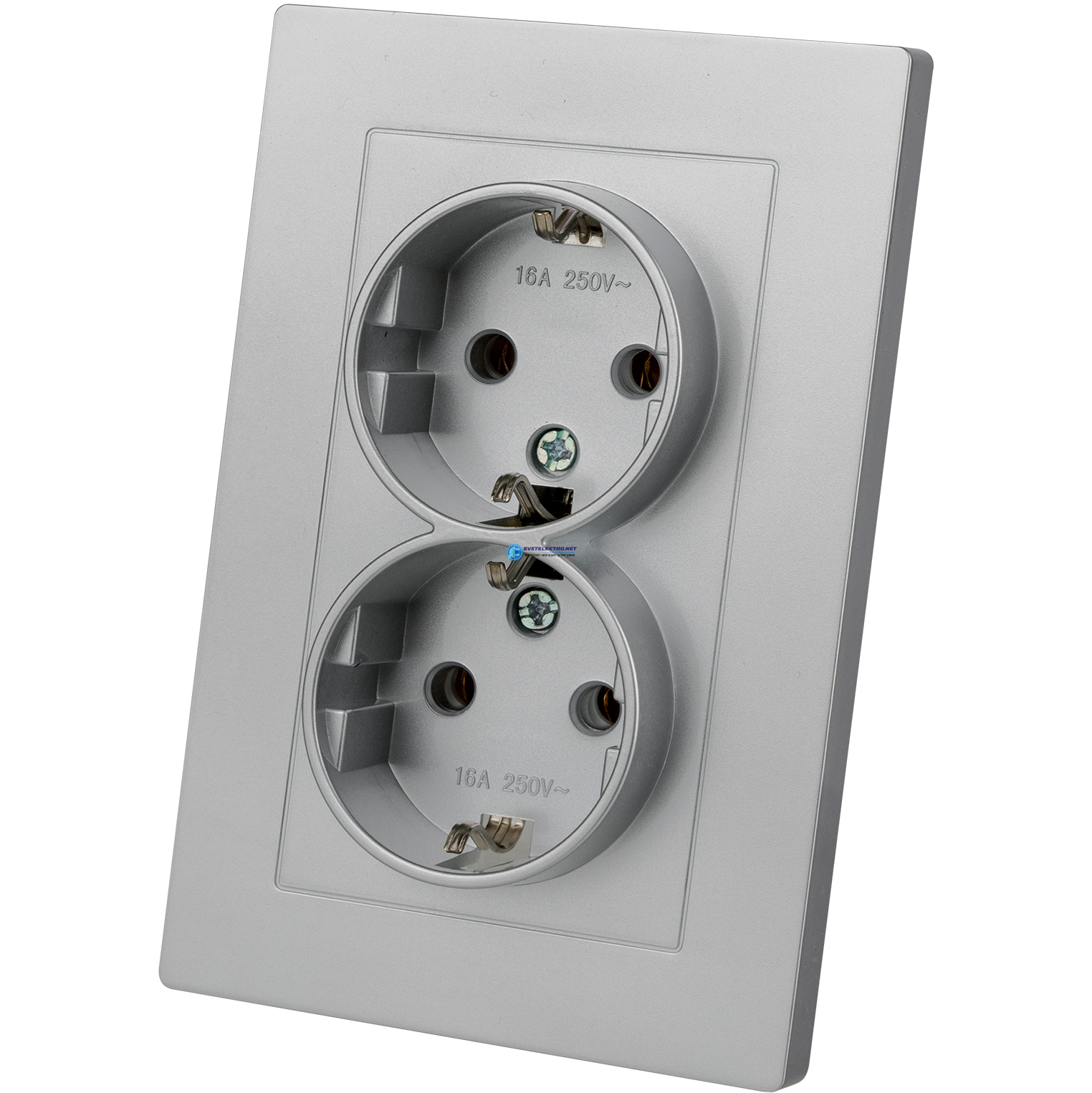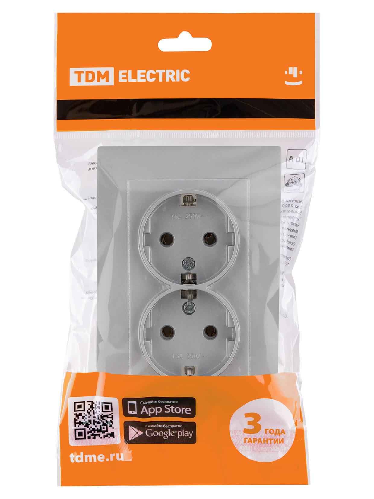 Розетка двойная 2П+З 16А 250В серебр. металлик "Сенеж", код SQ1816-0236, производитель TDM