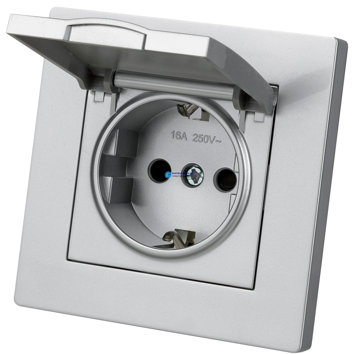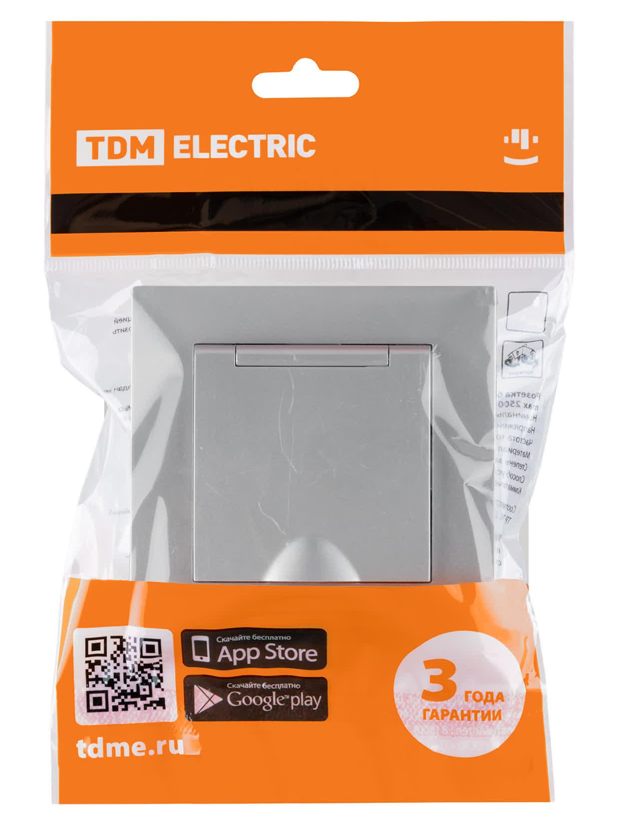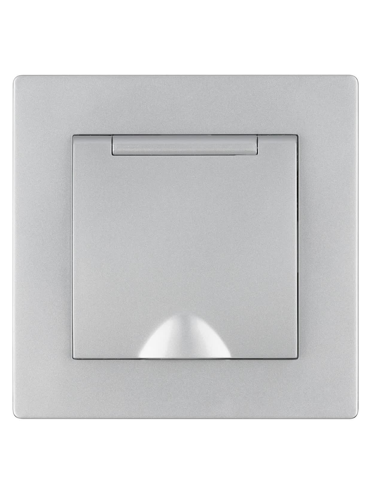 Розетка 2П+З 16А 250В IP44 с защ. шт. с крышкой серебр. металлик "Сенеж", код SQ1816-0239, производитель TDM