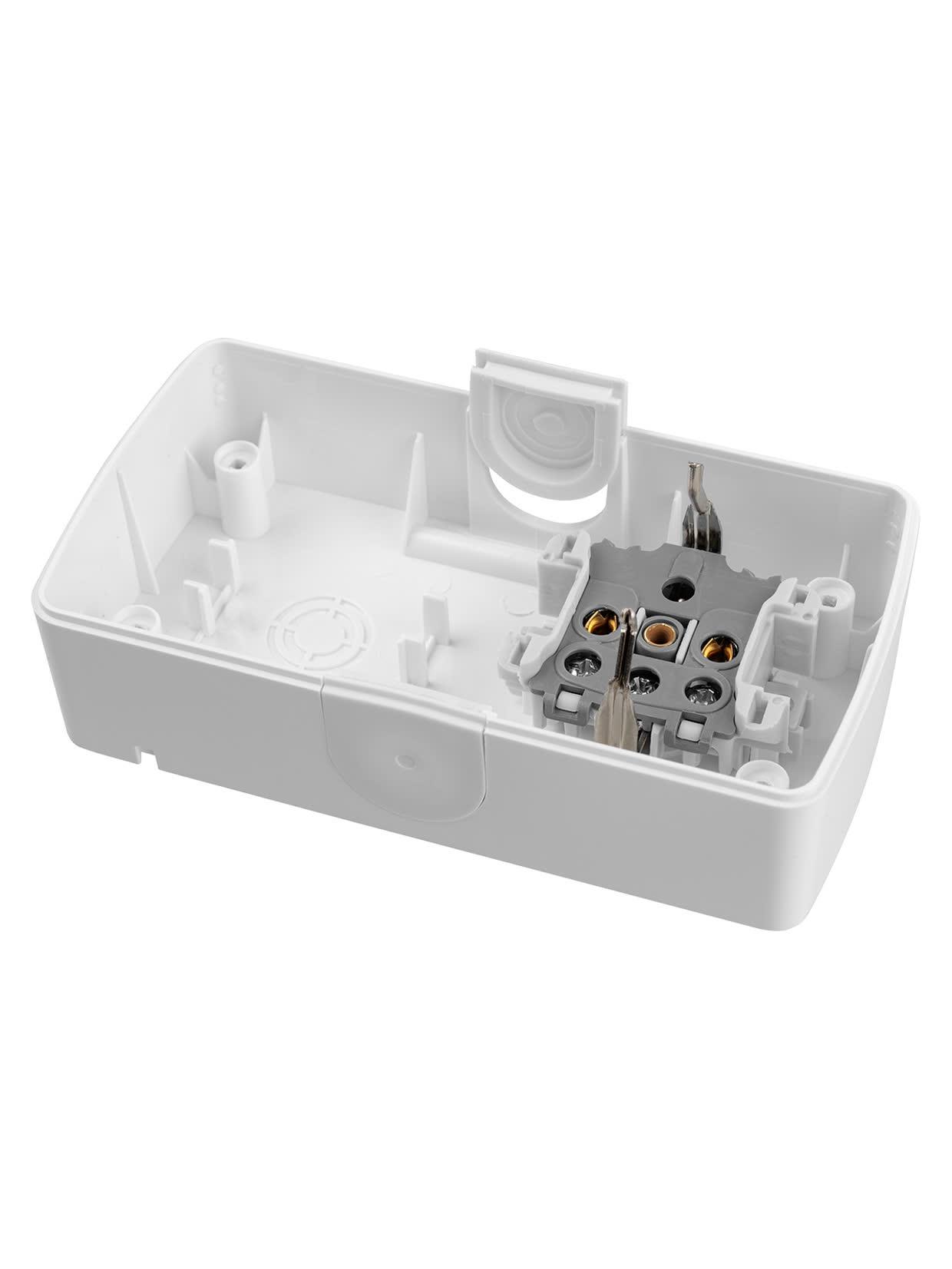 | Преимущества: | Степень защиты IP54 позволяет устанавливать изделие как внутри помещений, так и на улице под навесом|Шторки розетки обеспечивают дополнительную безопасность|Угол разворота крышки розетки 100 градусов позволяет удобно включать вилку|Винтовые контактные зажимы не деформируют проводник и позволяют делать шлейф без использования клемников|Герметичные съемные вводы дают возможность подключения как сверху, так и снизу|Высококачественный поликарбонат, прочный и устойчивый к УФ-излучению|Гарантийный срок 3 года: |