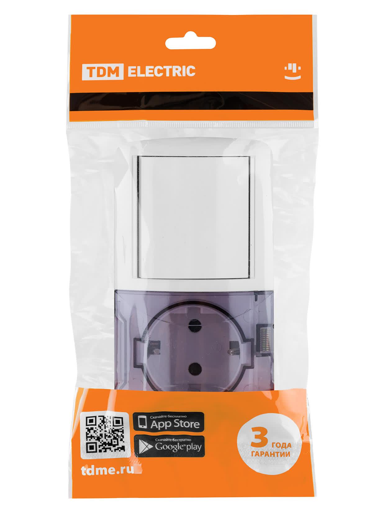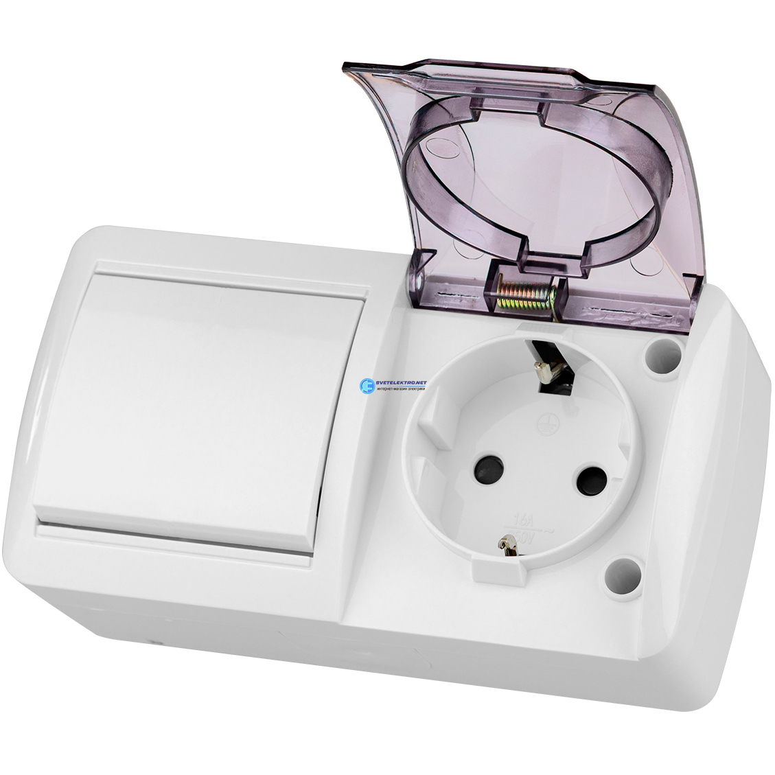 Блок выключатель 1-кл. 10А + розетка 2П+З 16А с защ. штор. с прозр. крыш. IP54 белый "Селигер", код SQ1818-0021, производитель TDM