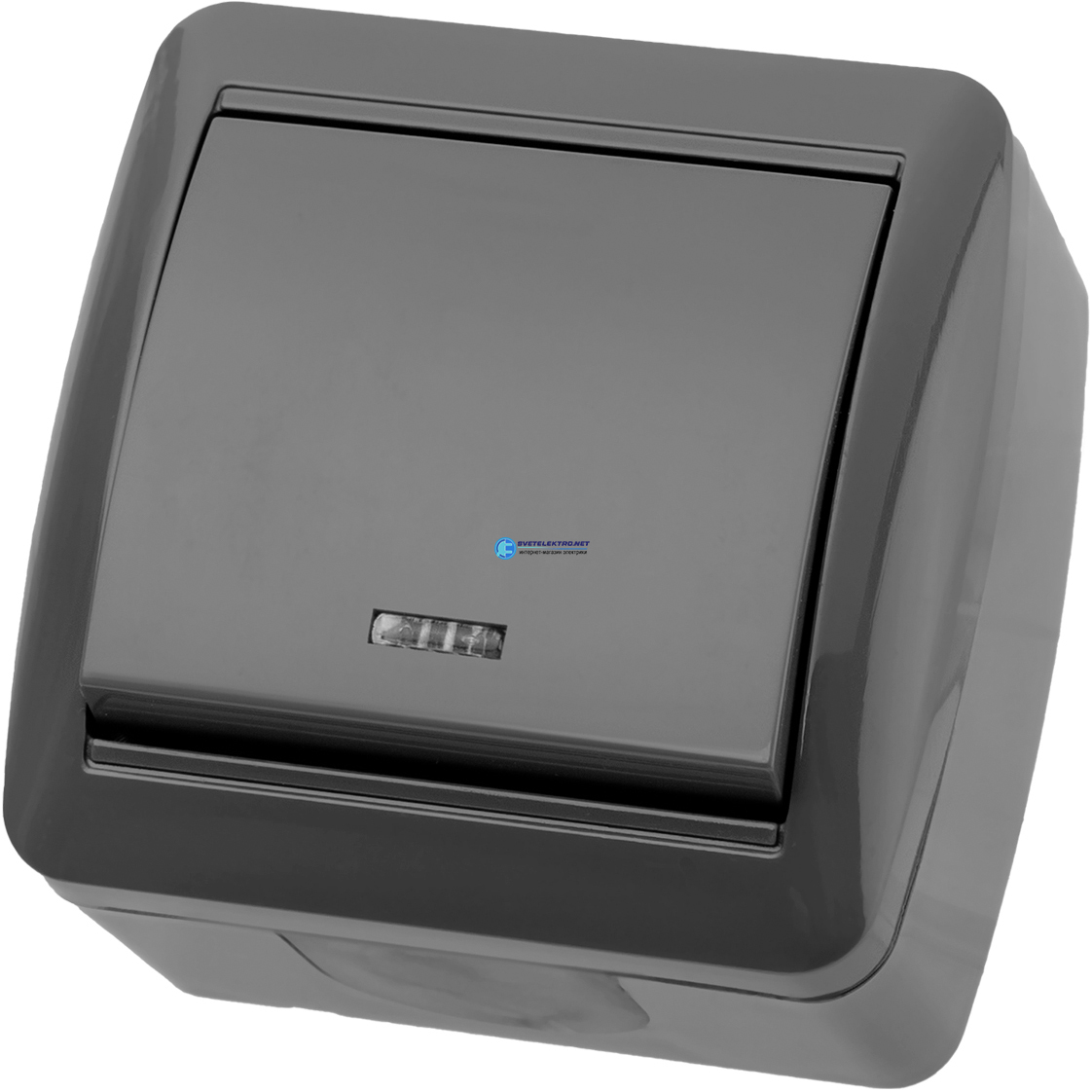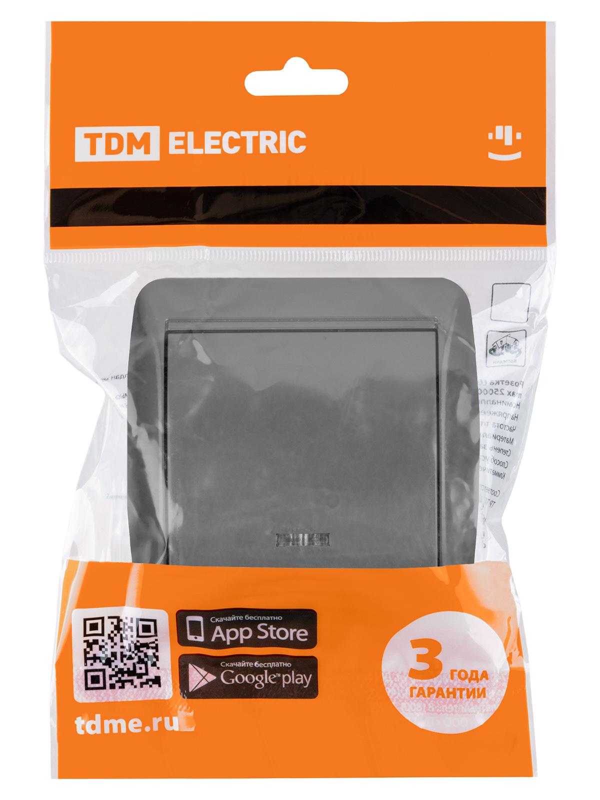 Выключатель 1-кл. открытой установки с подсветкой IP44 10А серый "Селигер", код SQ1818-0103, производитель TDM