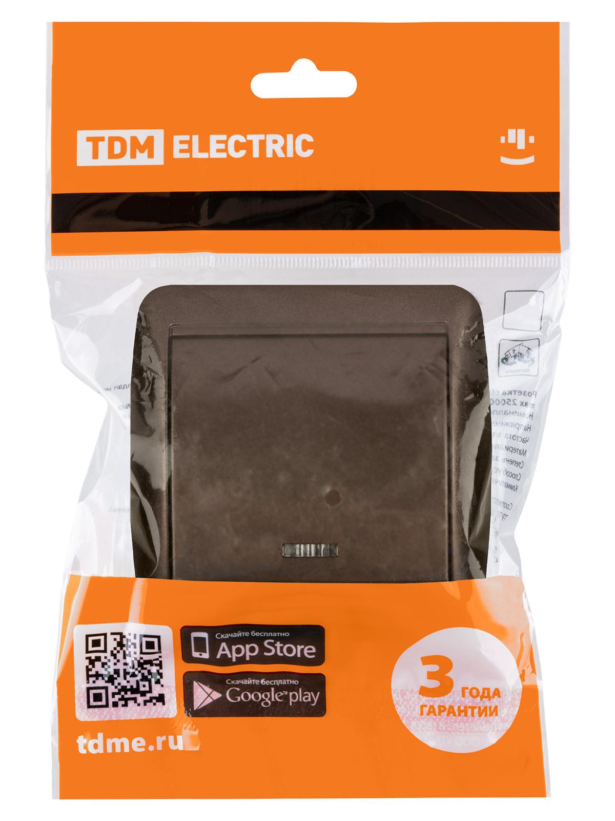Выключатель 1-кл. открытой установки с подсветкой IP44 10А шоколад "Селигер", код SQ1818-0203, производитель TDM