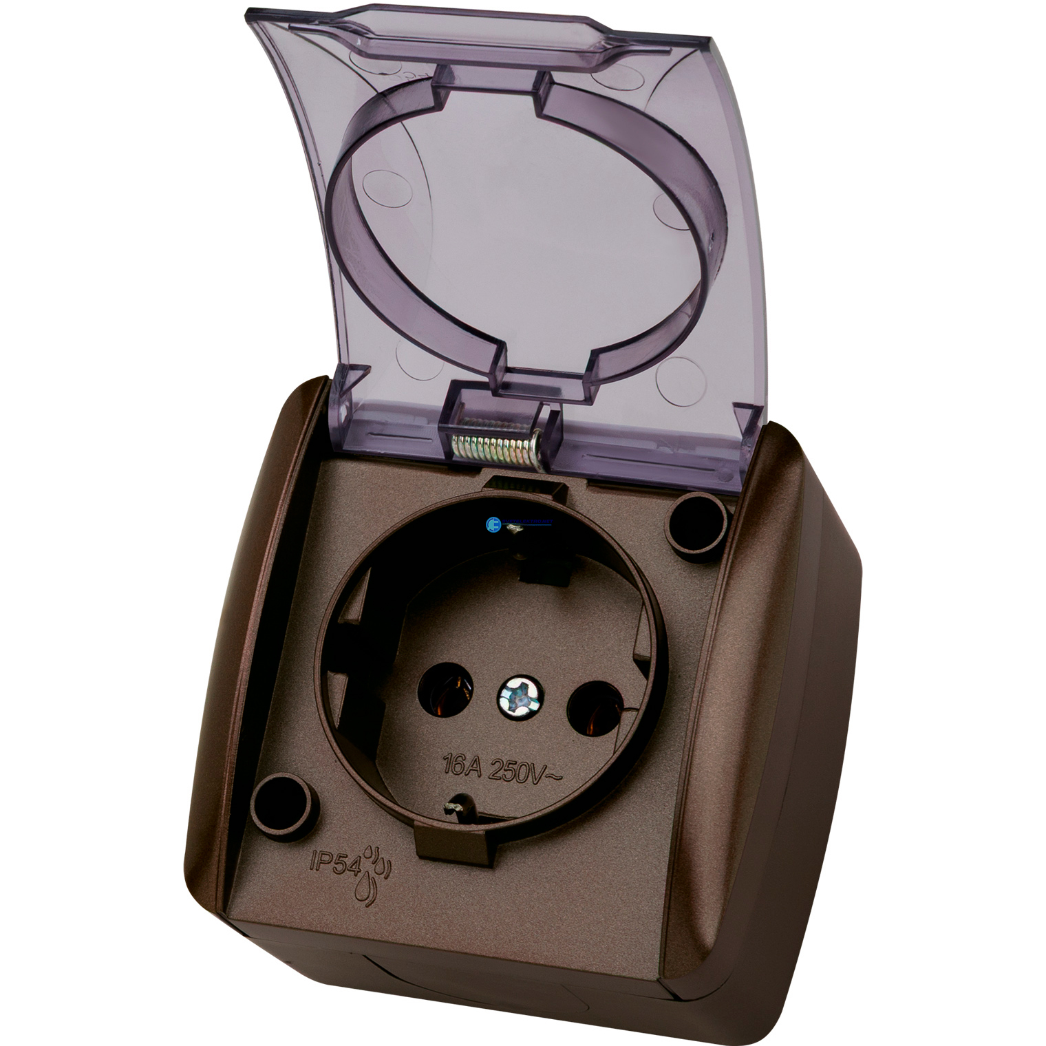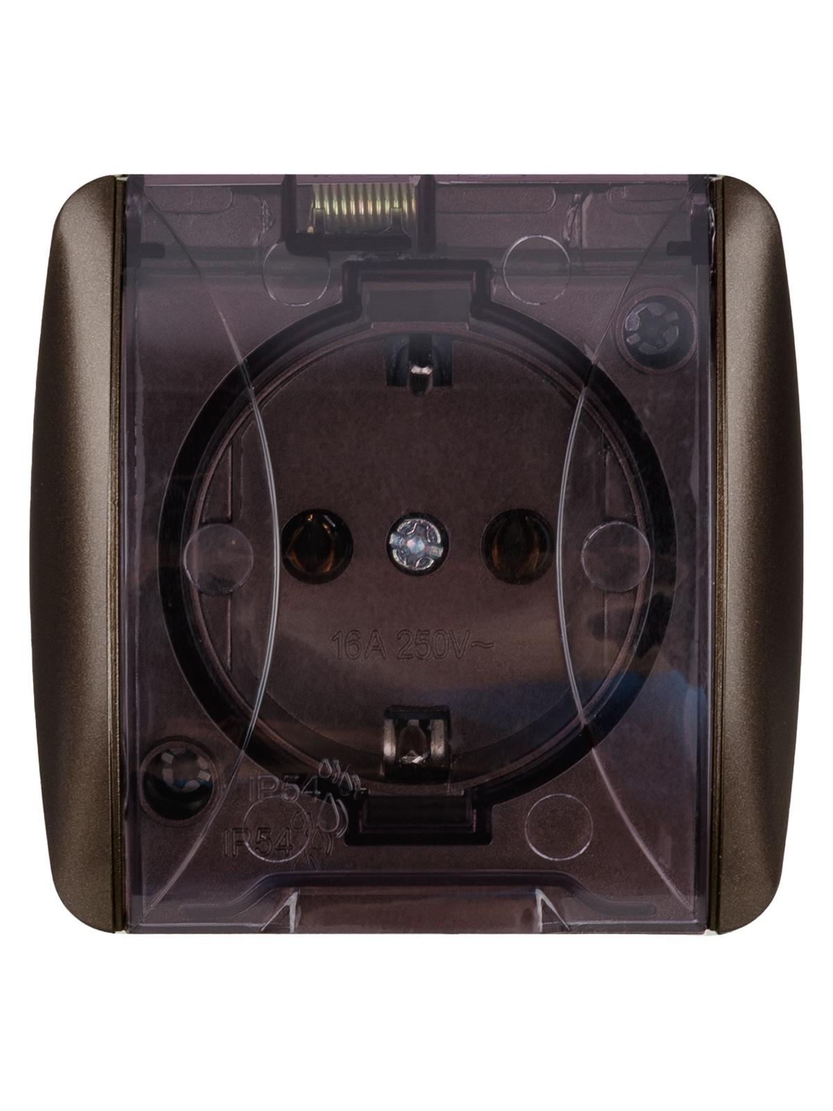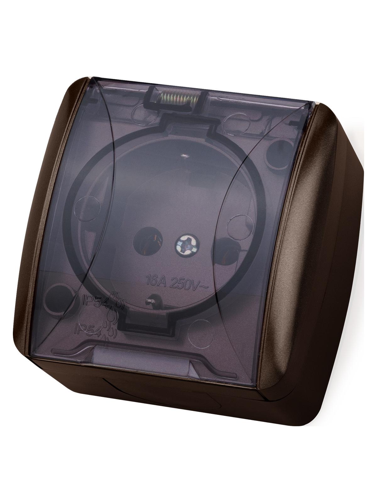 Розетка 2П+3 открытой установки IP54 16А с прозрачной крышкой шоколад "Селигер", код SQ1818-0207, производитель TDM