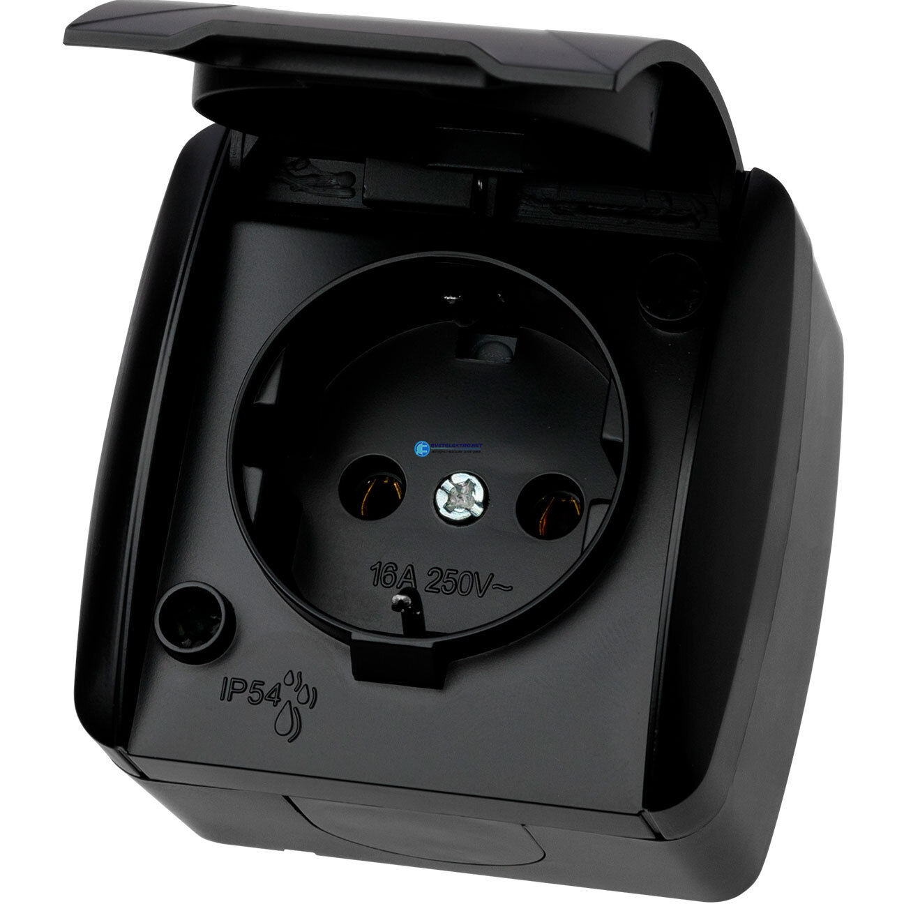 Розетка 2П+З открытой установки IP54 16А с крышкой графит ""Селигер"" SQ1818-0313 TDM
