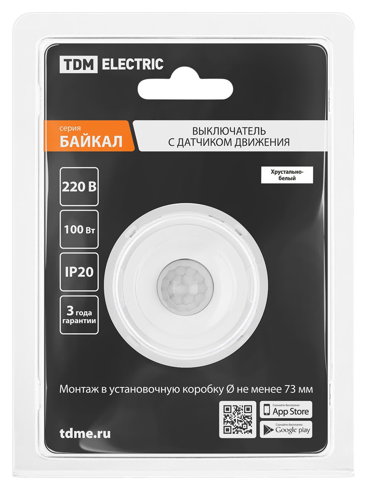 Выключатель с датчиком движения 16А 250В белый, "Байкал", код SQ1819-0046, производитель TDM
