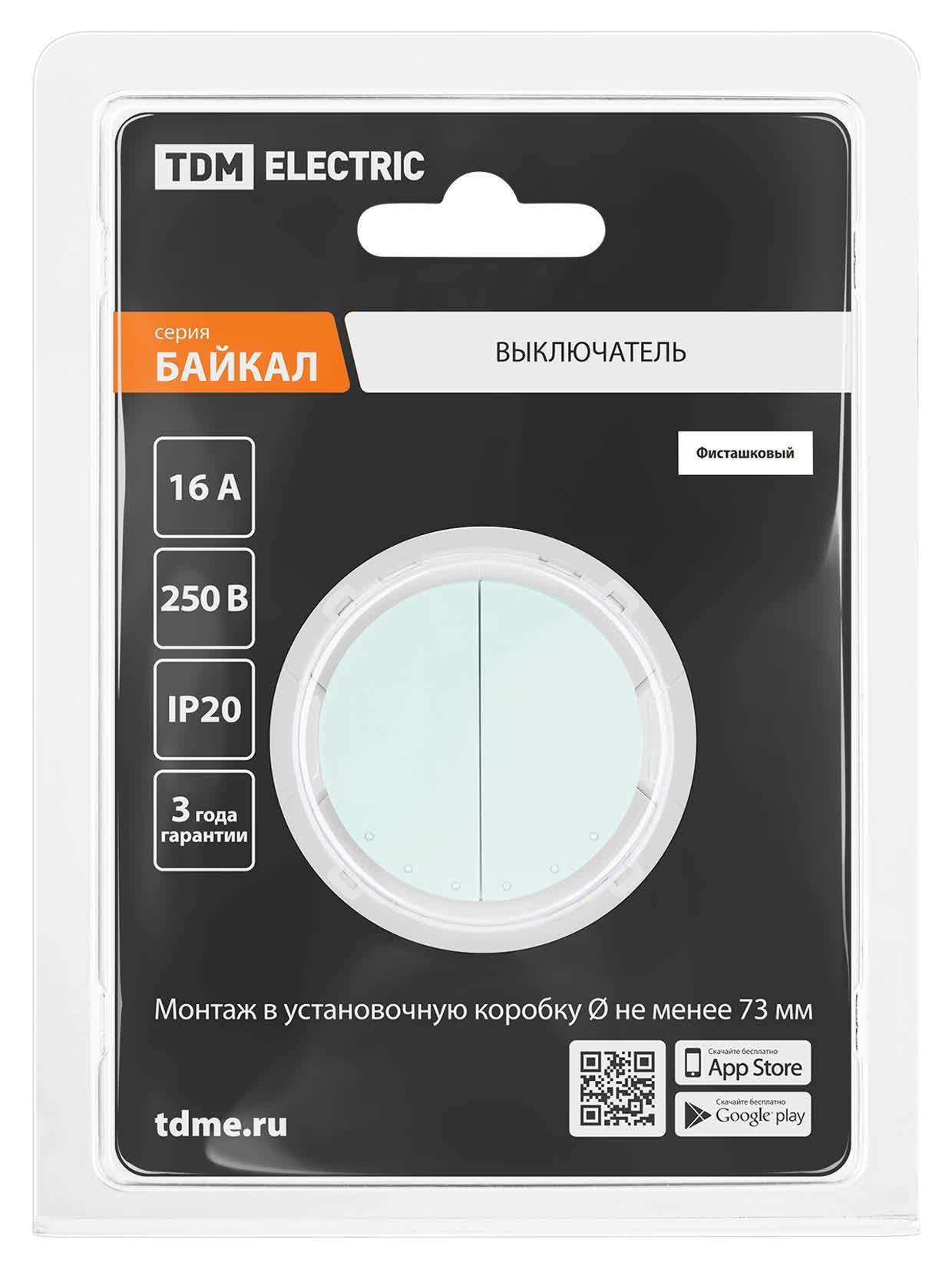 Выключатель 2-кл. 16А 250В фисташковый, "Байкал", код SQ1819-0133, производитель TDM