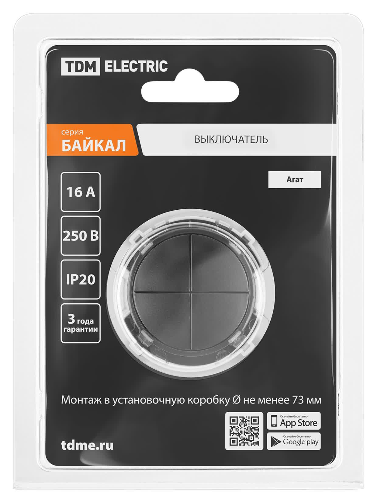 Выключатель 4-кл. 16А 250В проходной кнопочный механизм агат, "Байкал", код SQ1819-0229, производитель TDM