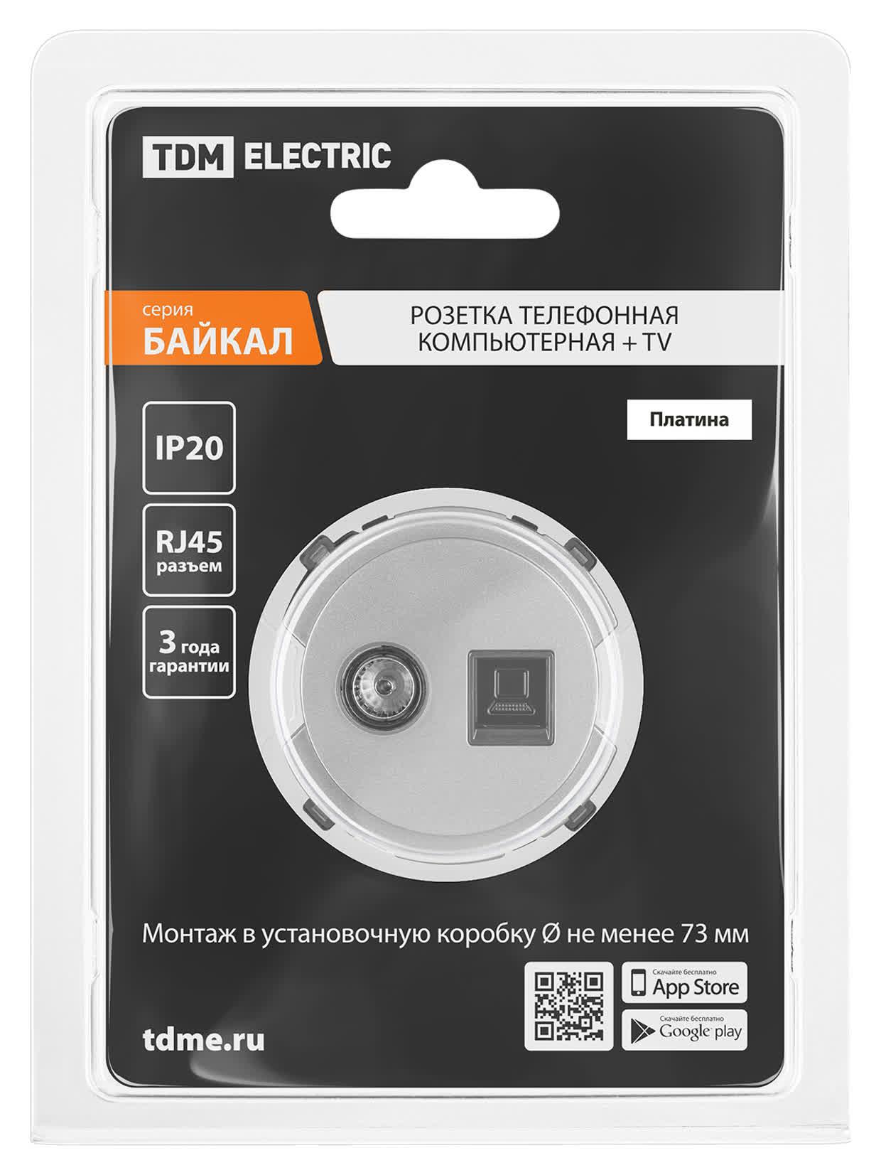 Розетка компьютерная RJ45 + TV розетка оконечная платина, "Байкал", код SQ1819-0319, производитель TDM