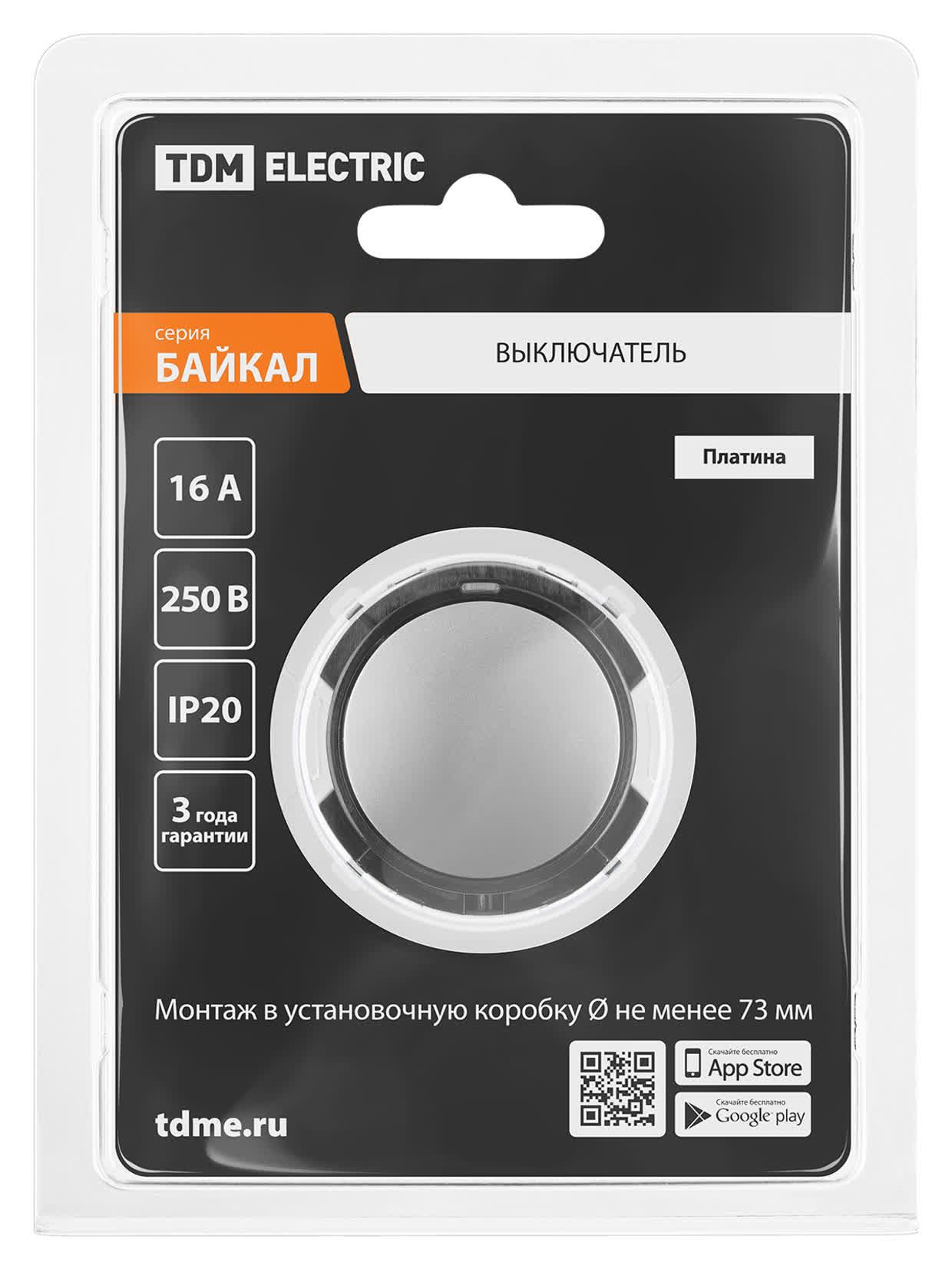 Выключатель 1-кл. 16А 250В проходной кнопочный механизм платина, "Байкал", код SQ1819-0323, производитель TDM
