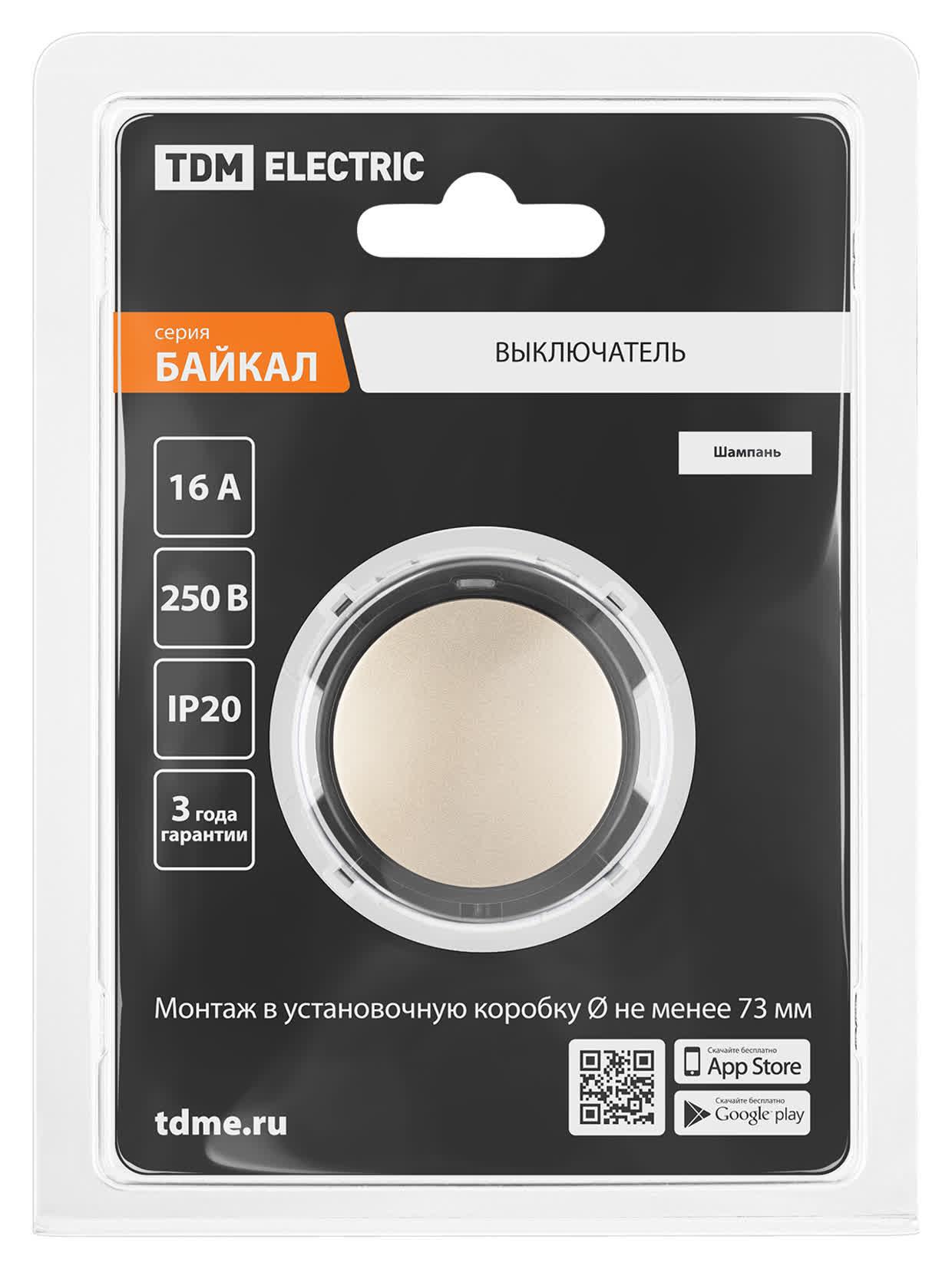 Выключатель 1-кл. 16А 250В проходной кнопочный механизм шампань, "Байкал", код SQ1819-0523, производитель TDM