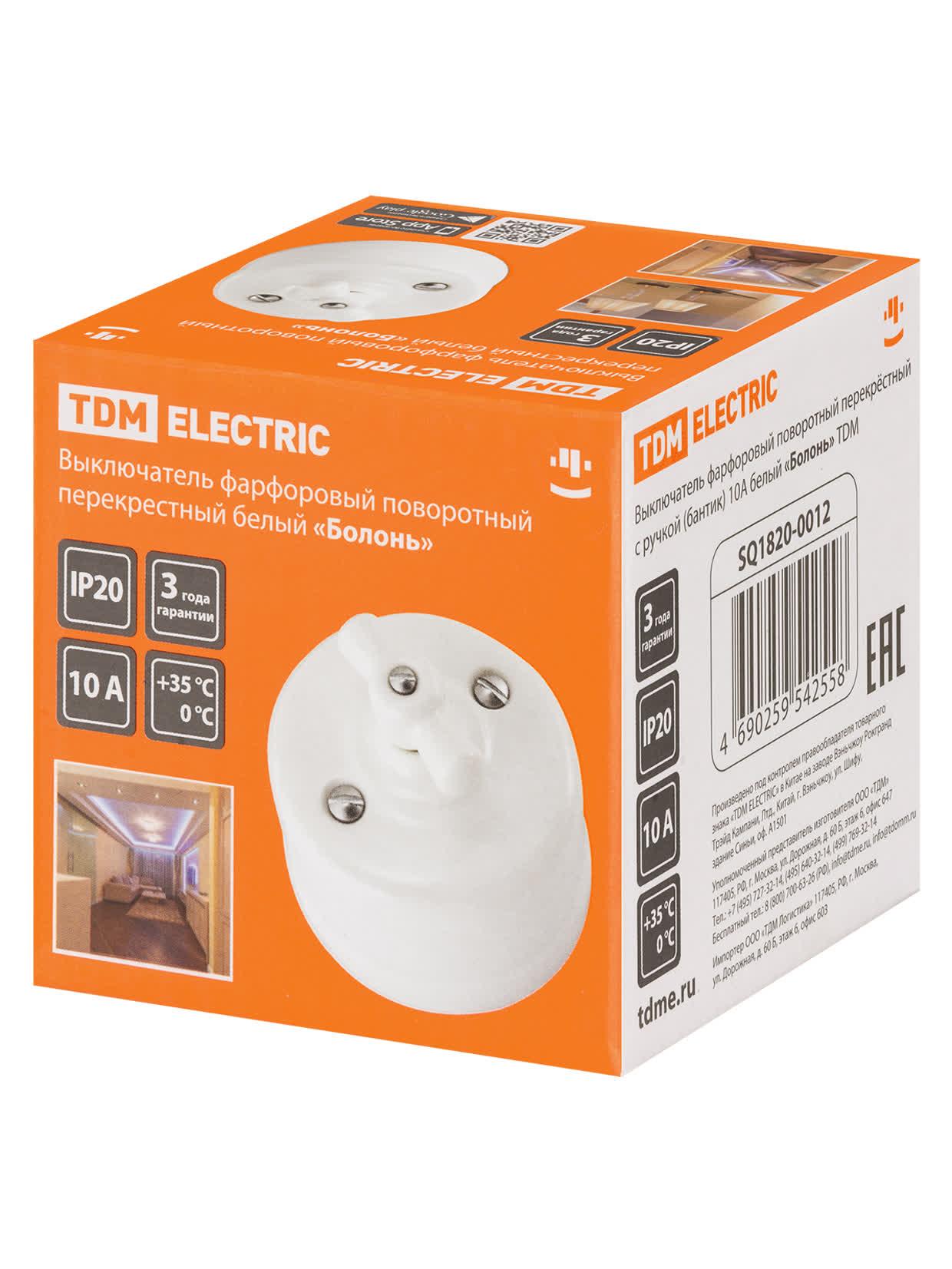 Выключатель фарфоровый поворотный перекрёстный с ручкой (бантик) 10А белый «Болонь», код SQ1820-0012, производитель TDM
