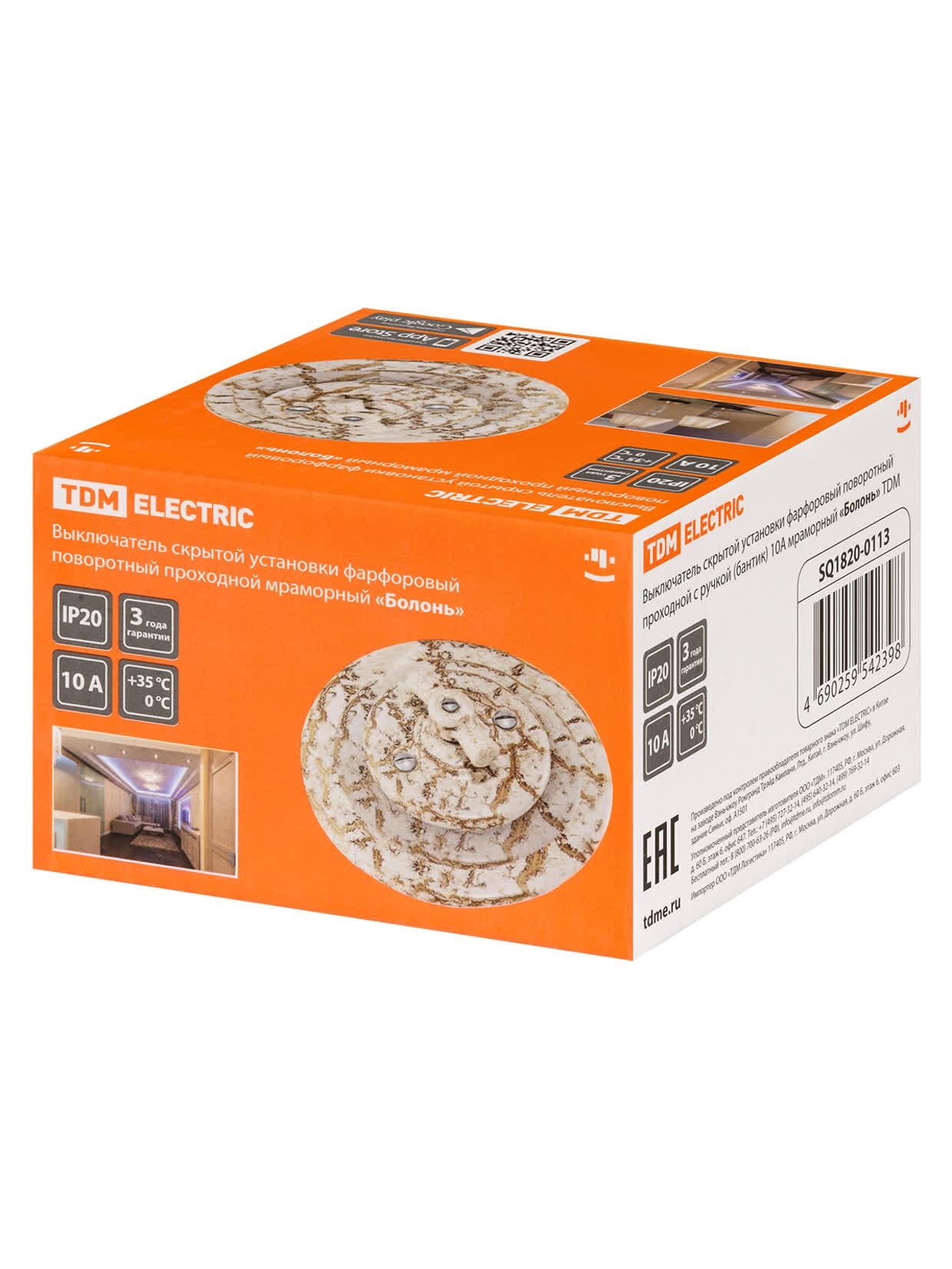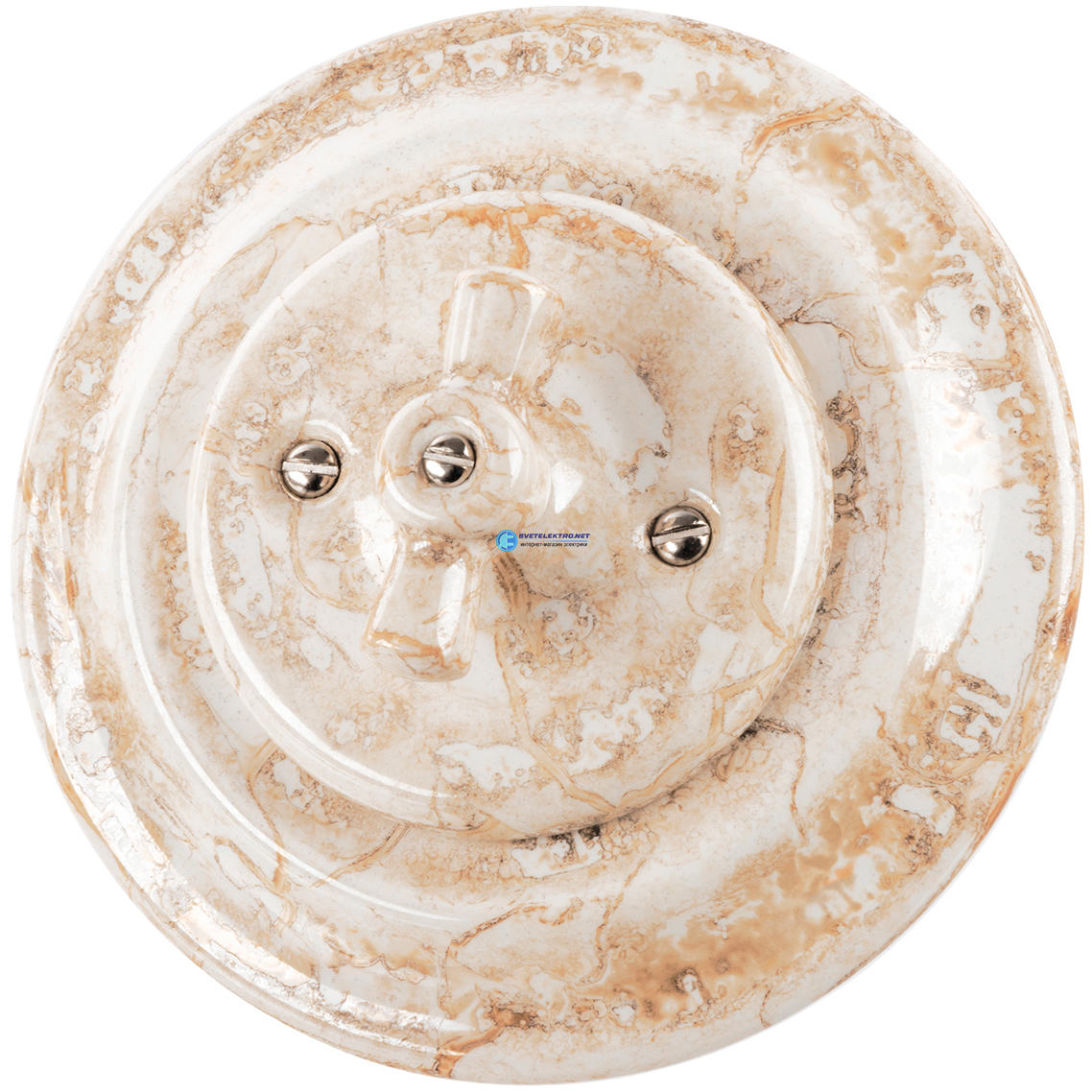 Выключатель скрытой установки фарфоровый поворотный проходной с ручкой (бантик) 10А мраморный «Болон, код SQ1820-0113, производитель TDM
