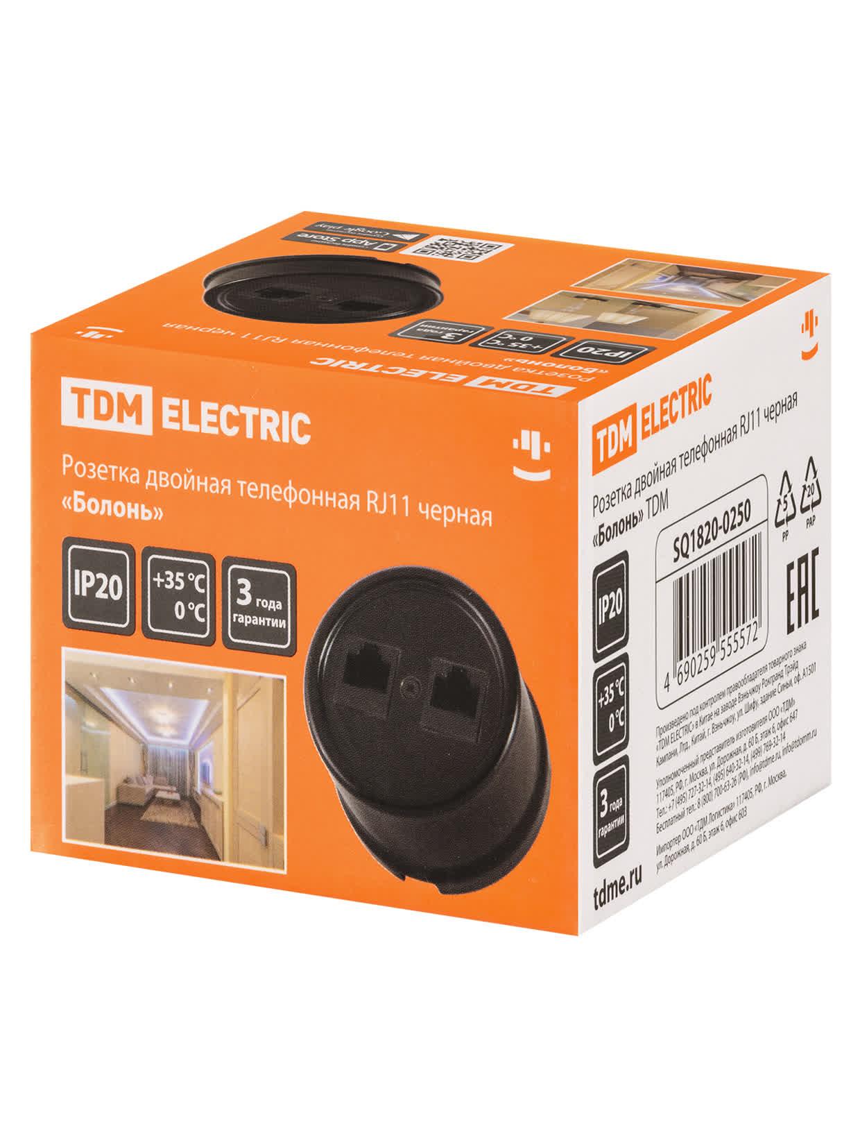 Розетка двойная телефонная RJ11 черная «Болонь», код SQ1820-0250, производитель TDM