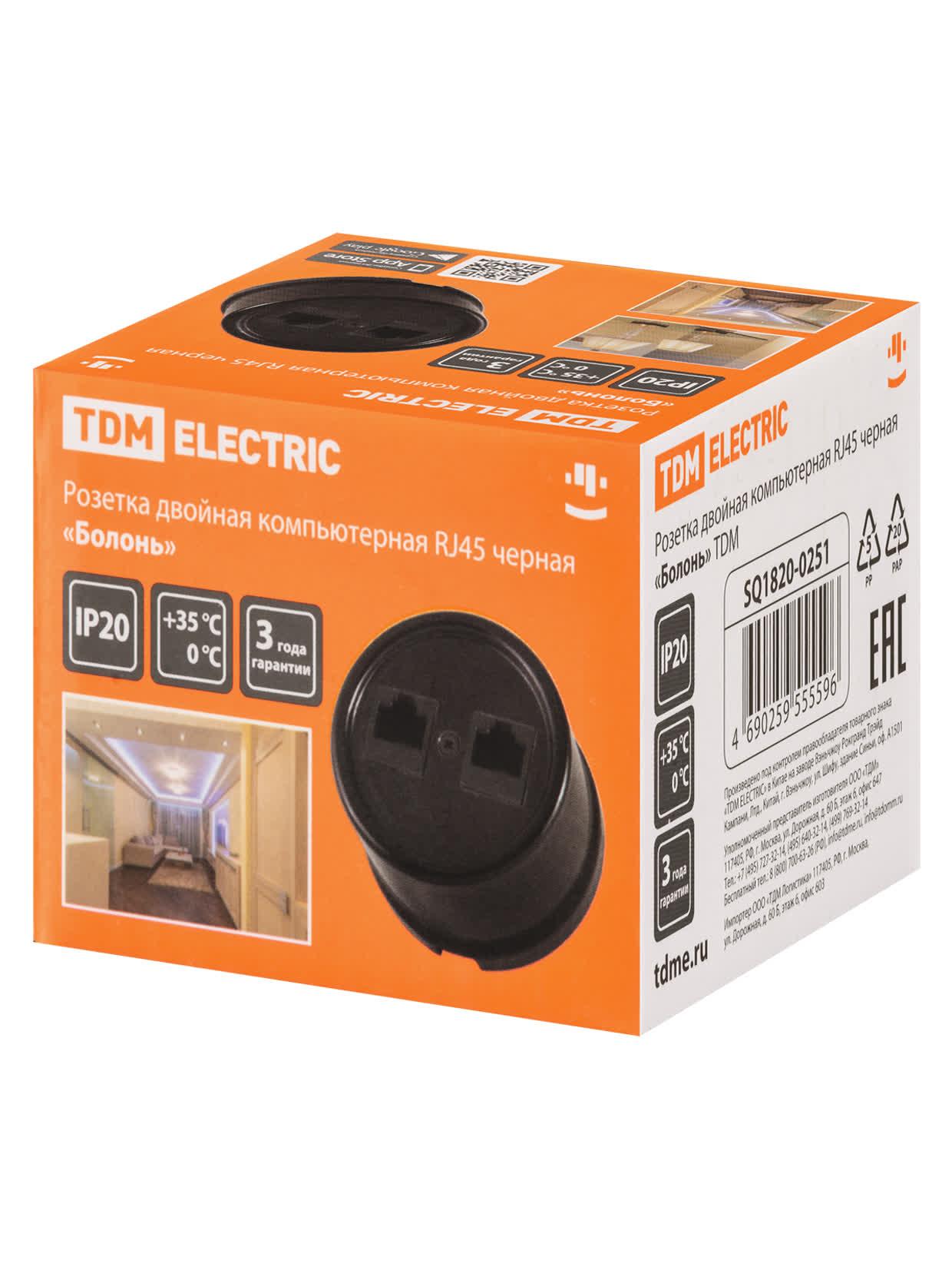 Розетка двойная компьютерная RJ45 черная «Болонь», код SQ1820-0251, производитель TDM