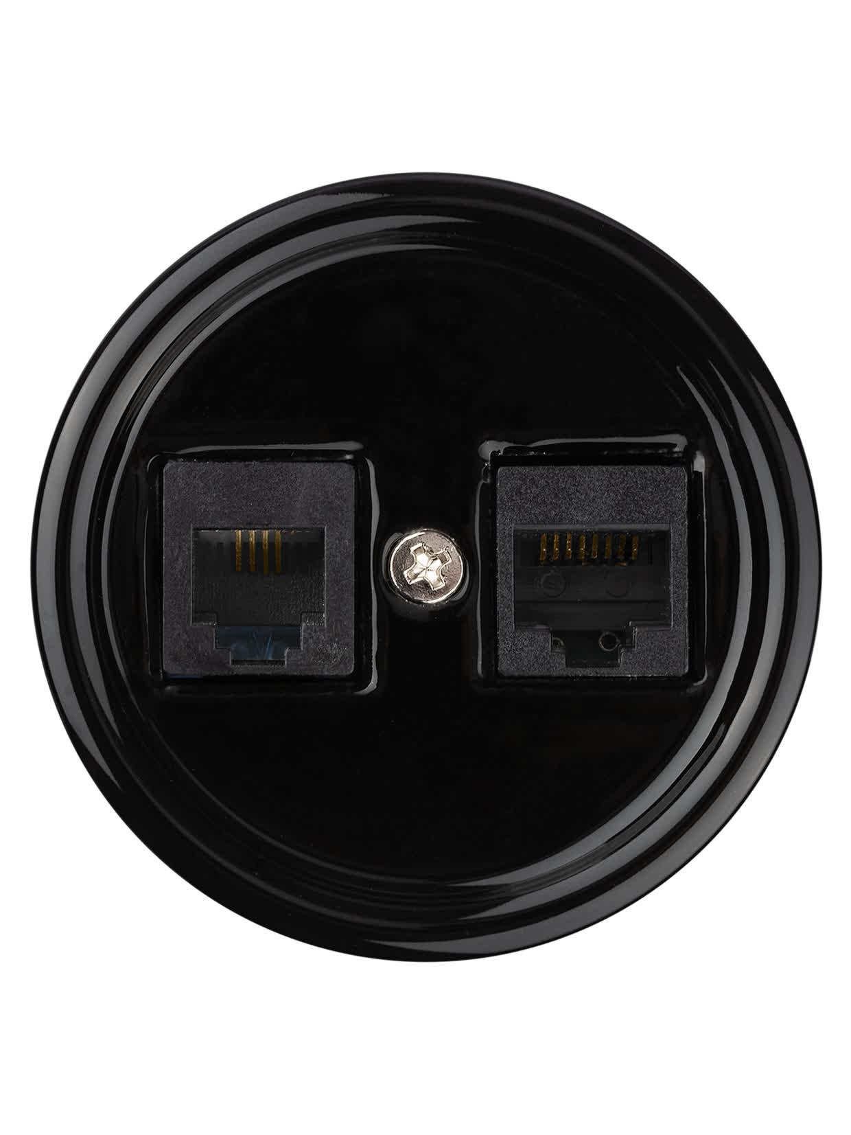 Розетка телефонная RJ11 + компьютерная RJ45 черная «Болонь», код SQ1820-0252, производитель TDM