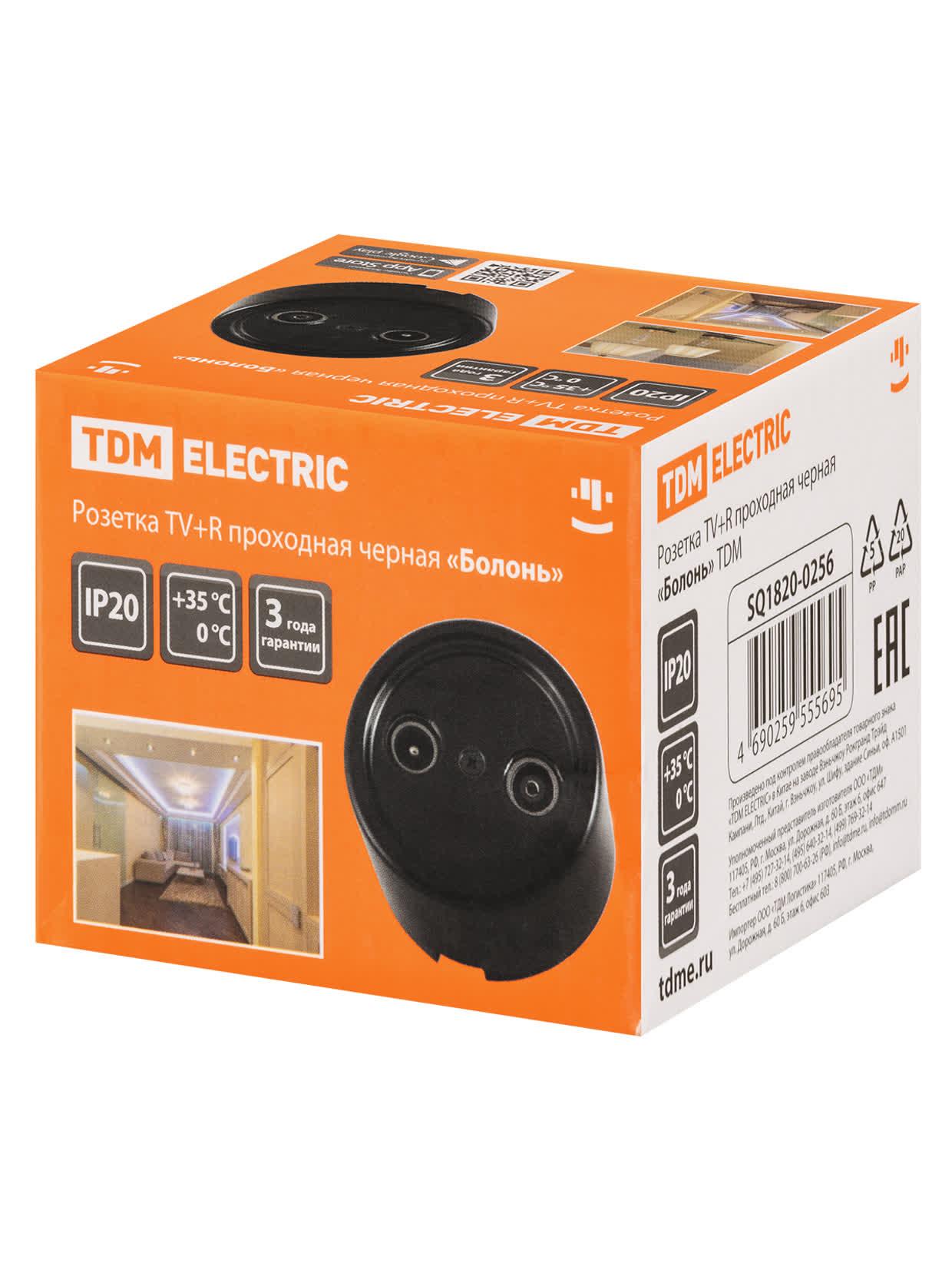 Розетка TV+R проходная черная «Болонь», код SQ1820-0256, производитель TDM