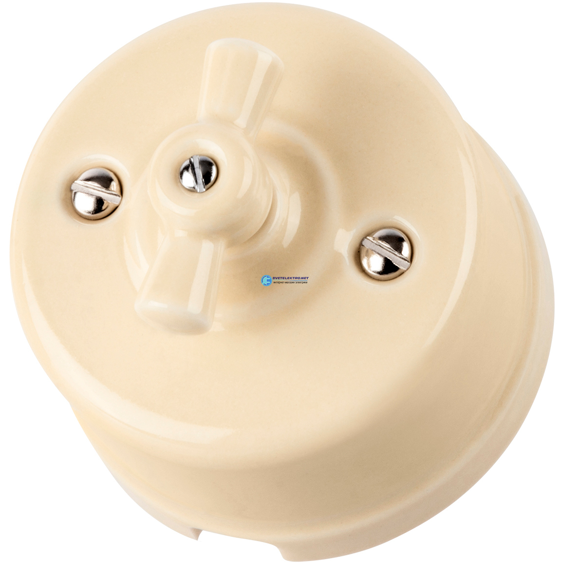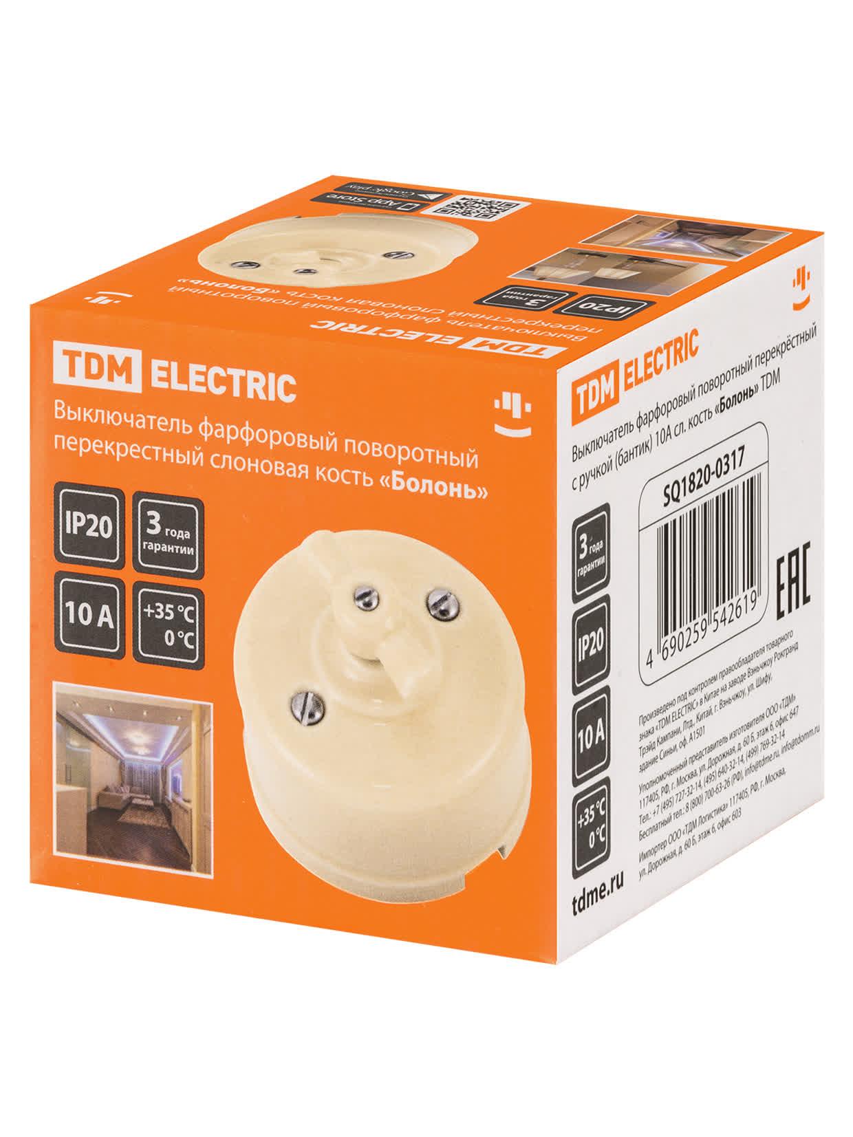 Выключатель фарфоровый поворотный перекрёстный с ручкой (бантик) 10А сл. кость «Болонь», код SQ1820-0317, производитель TDM