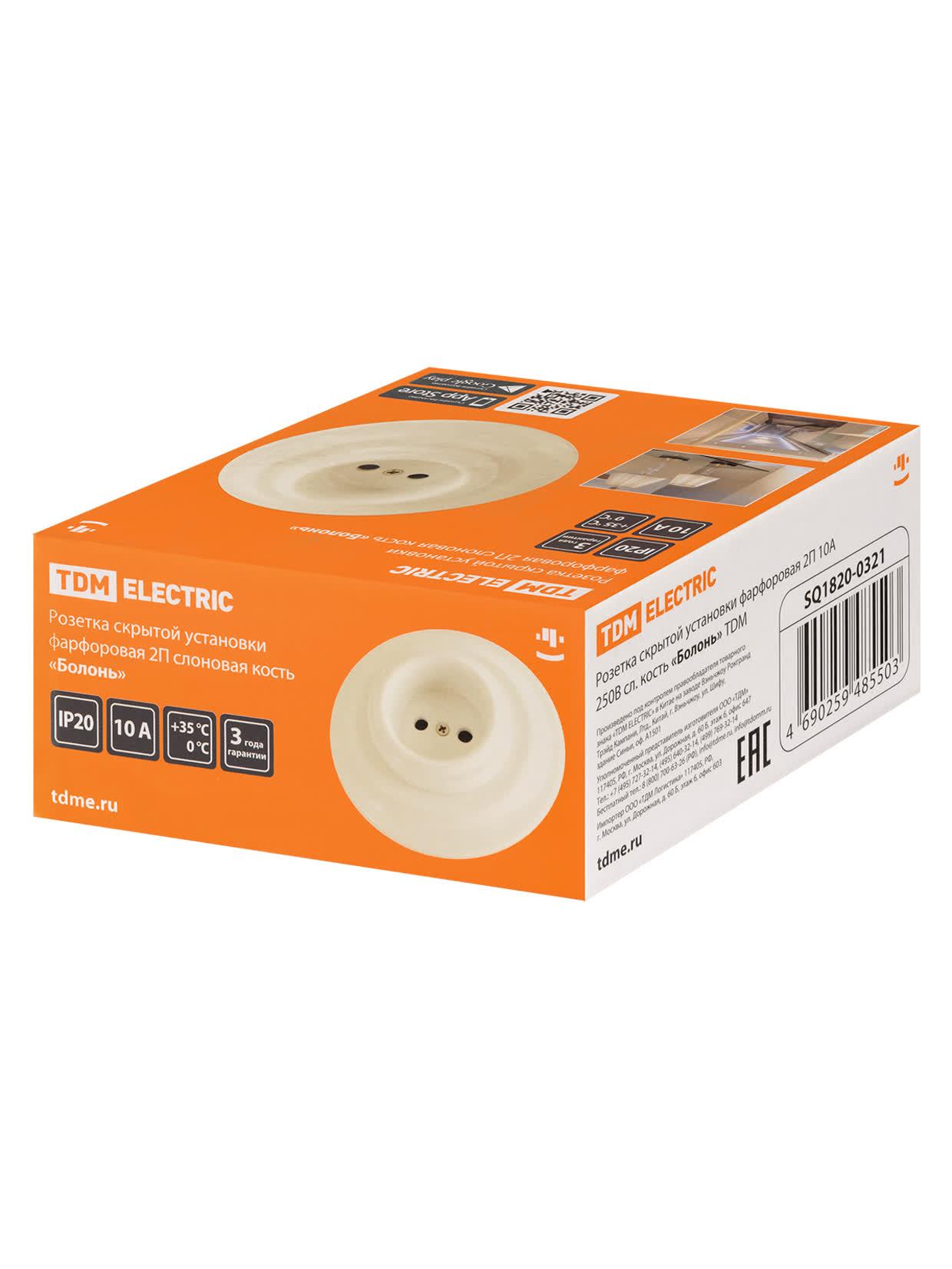 Розетка скрытой установки фарфоровая 2П 10А 250В сл. кость «Болонь», код SQ1820-0321, производитель TDM