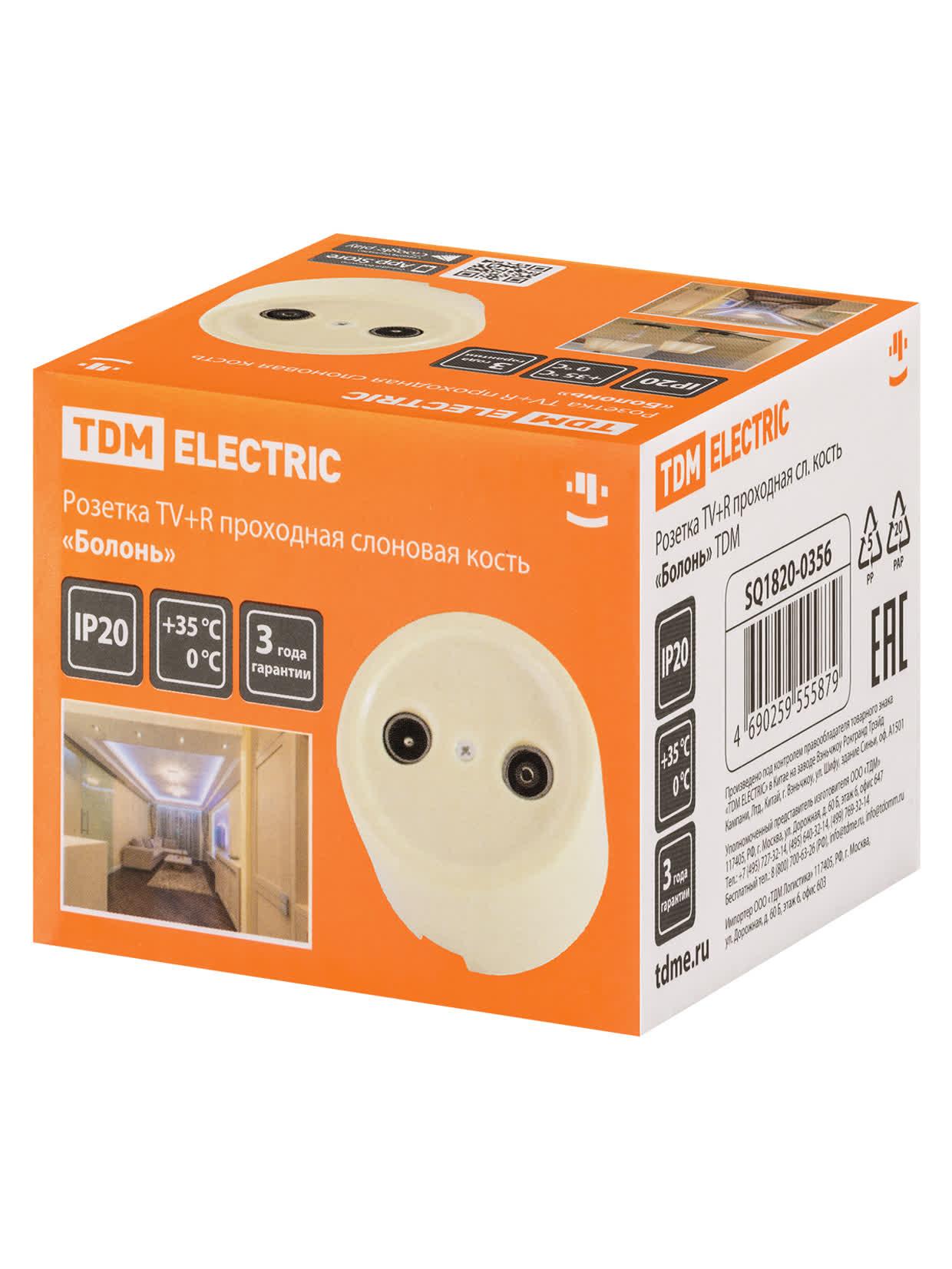 Розетка TV+R проходная сл. кость «Болонь», код SQ1820-0356, производитель TDM