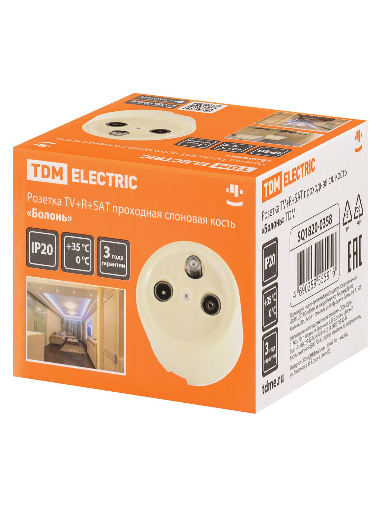 Розетка TV+R+ SAT проходная сл. кость «Болонь», код SQ1820-0358, производитель TDM