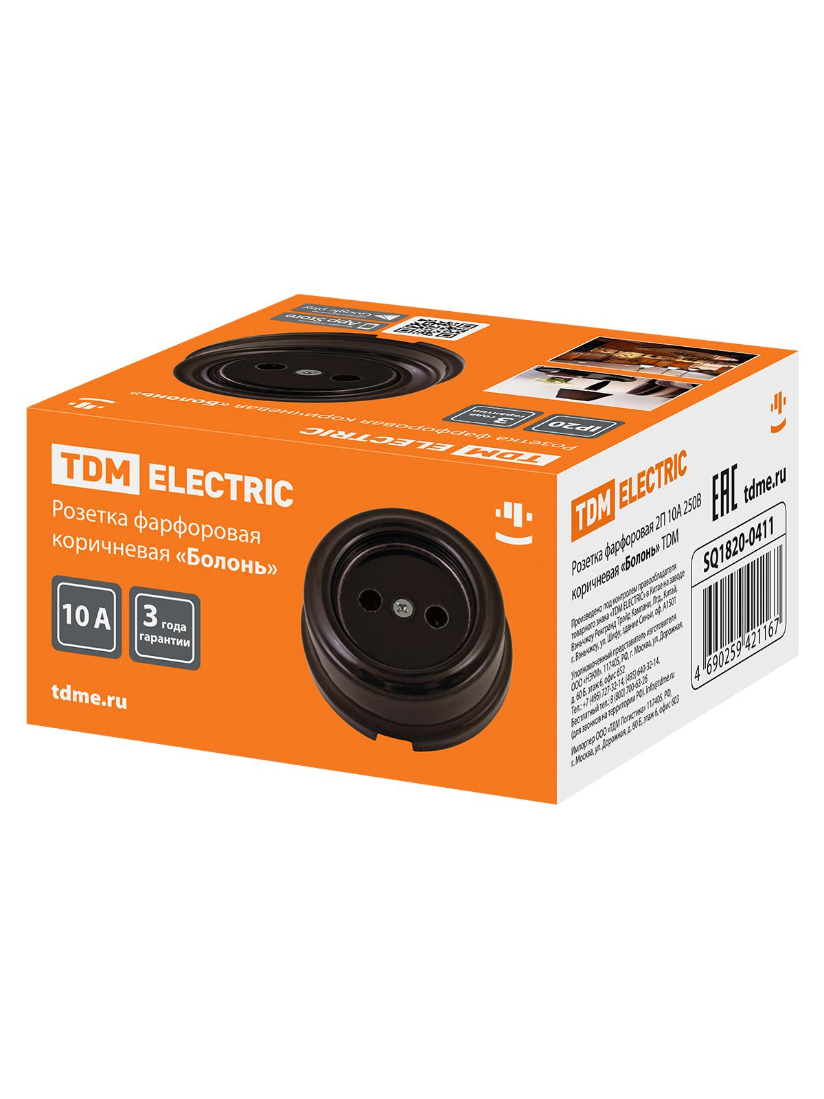 Розетка фарфоровая 2П 10А 250В коричневая «Болонь», код SQ1820-0411, производитель TDM