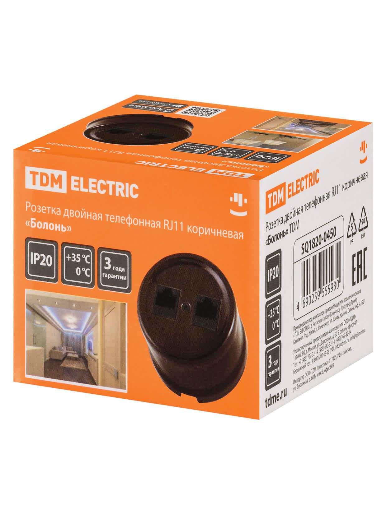 Розетка двойная телефонная RJ11 коричневая «Болонь», код SQ1820-0450, производитель TDM