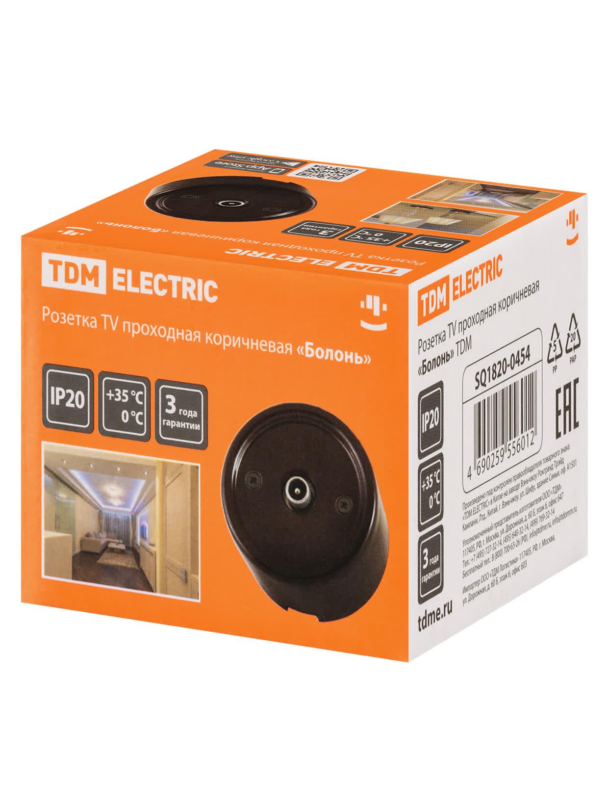 Розетка TV проходная коричневая «Болонь», код SQ1820-0454, производитель TDM