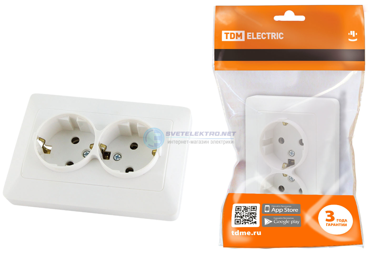 Розетка двойная 2П+З 16А 250В белая "Ильмень", код SQ1823-0012, производитель TDM