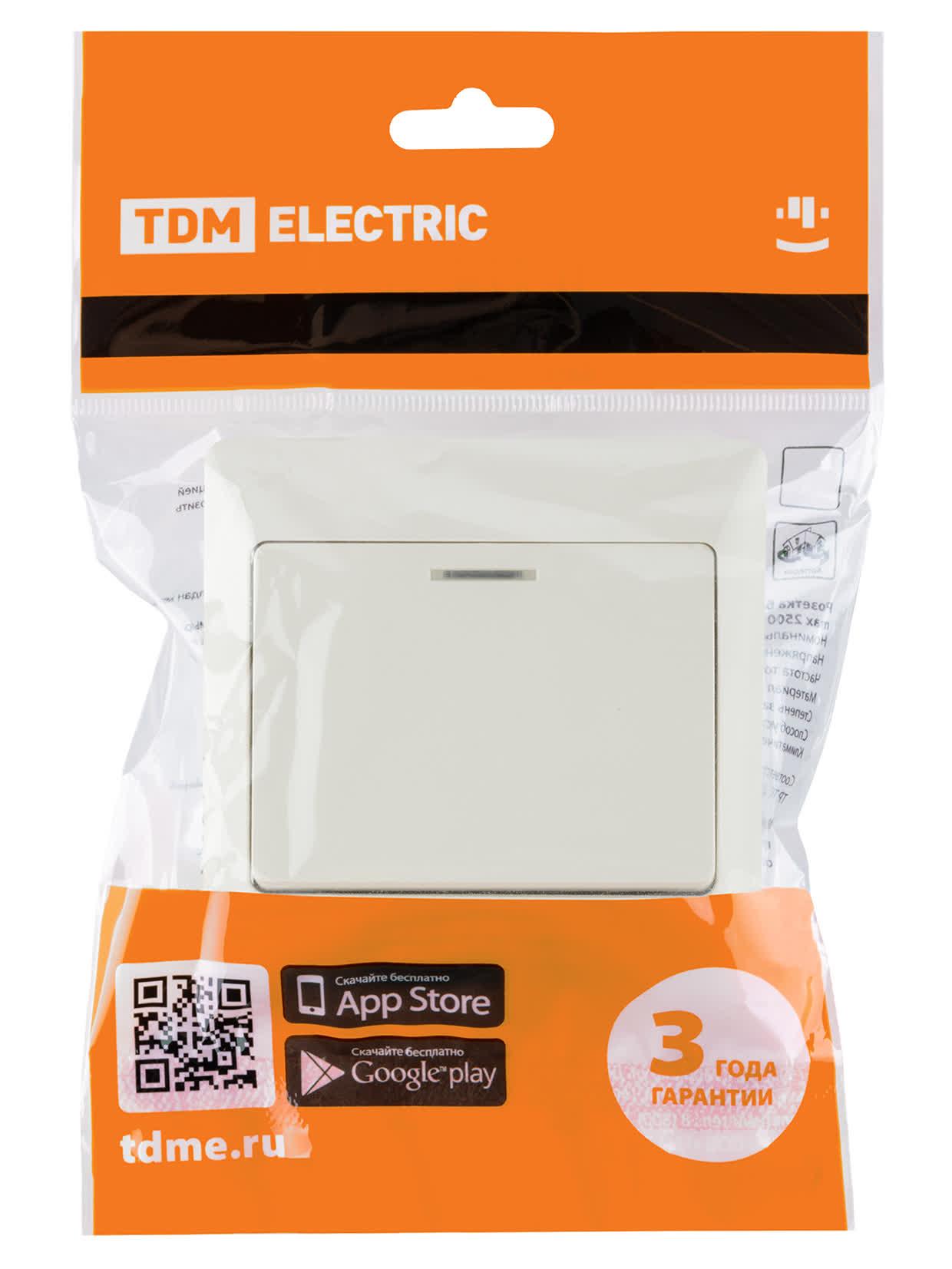 Выключатель кл. с подсветкой сл. кость "Ильмень", код SQ1823-0103, производитель TDM
