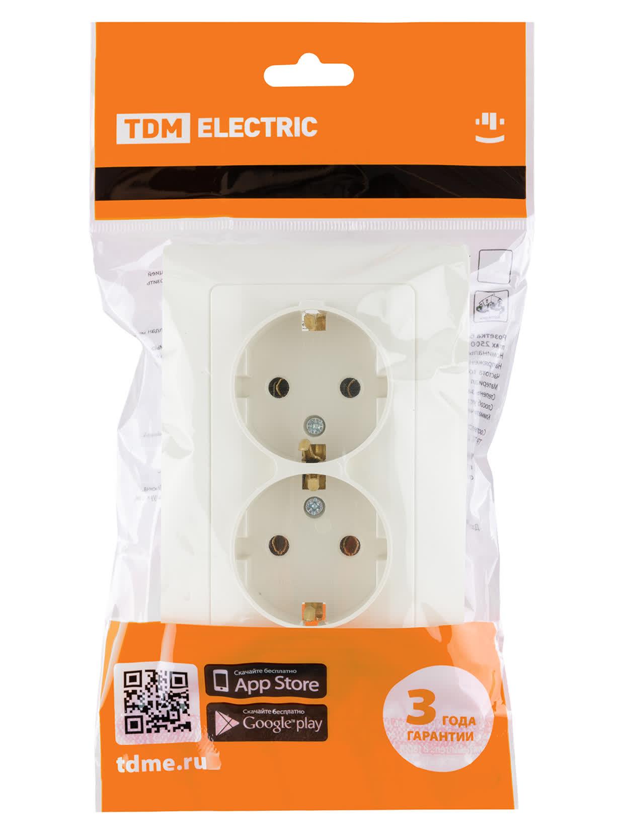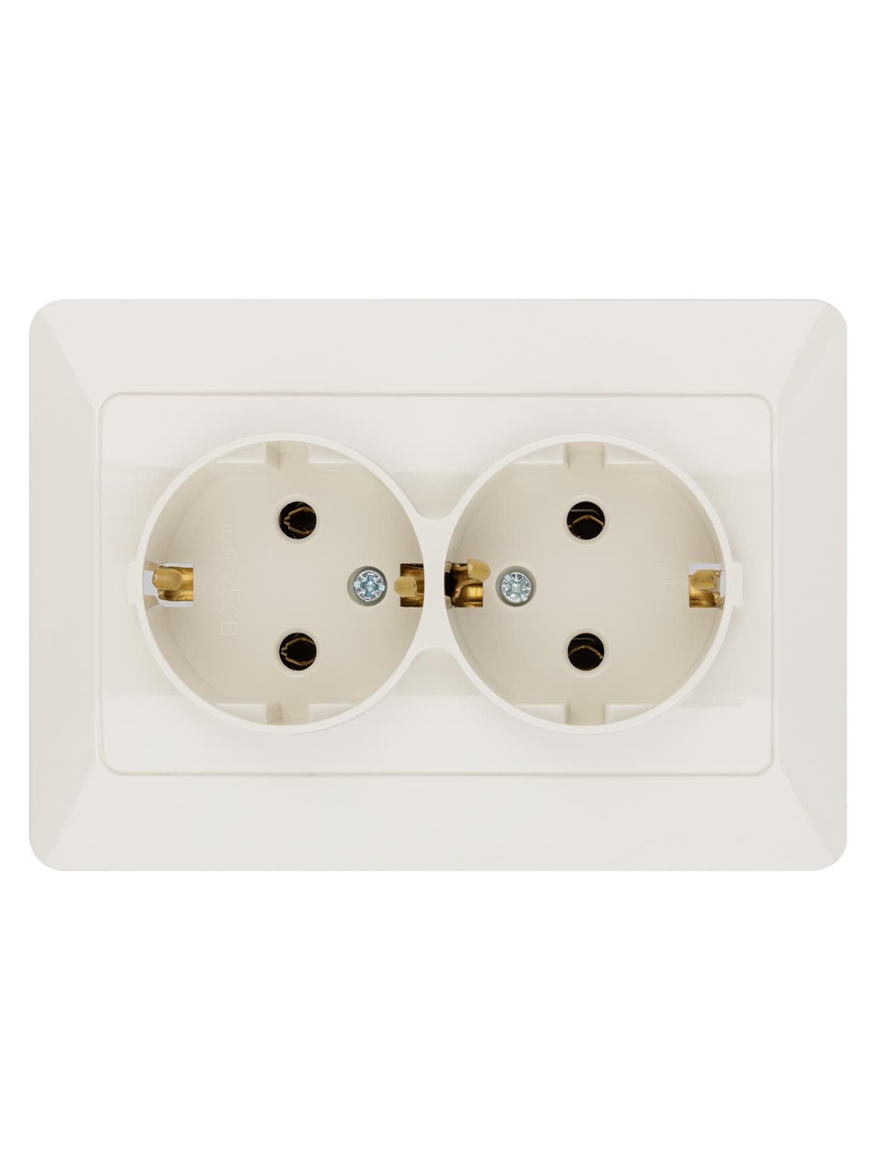 Розетка двойная 2П+З 16А 250В сл. кость "Ильмень", код SQ1823-0112, производитель TDM