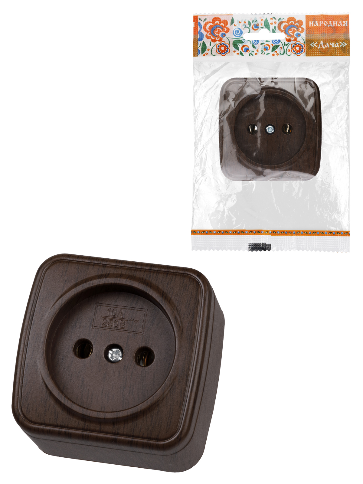 Розетка 2П открытой установки IP20 10А, венге "Дача" Народная", код SQ1824-0027, производитель TDM
