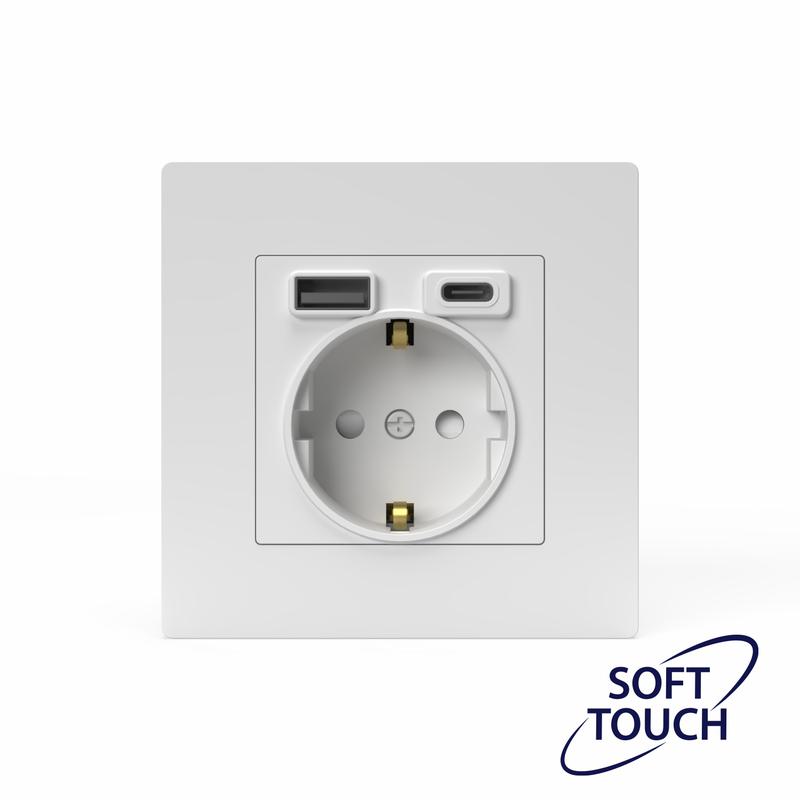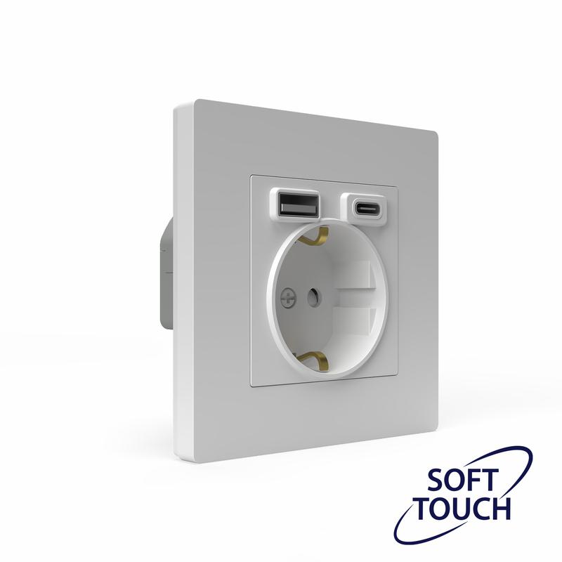 Розетка 1-м СП Pixel IP20 с заземл. с 2-мя заряд. устр. USB тип A+C механизм айс, код TKE-PX-R1U2AC-C34, производитель TOKOV ELECTRIC