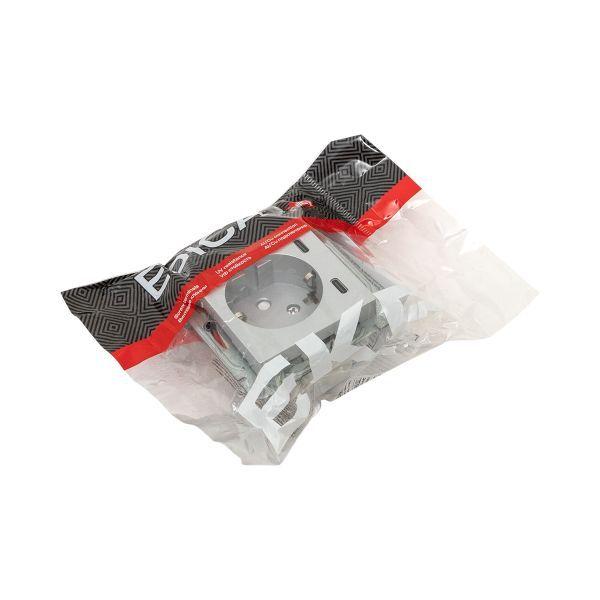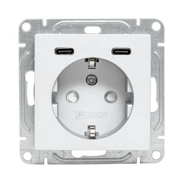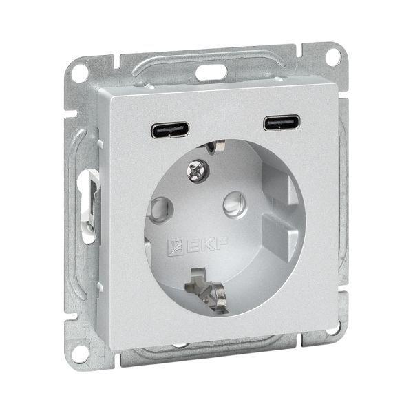 Эпика Механизм розетки с USBC 2шт 16А с заземлением со шторками алюминий, код UP1-SOA-111-2USBC, производитель EKF