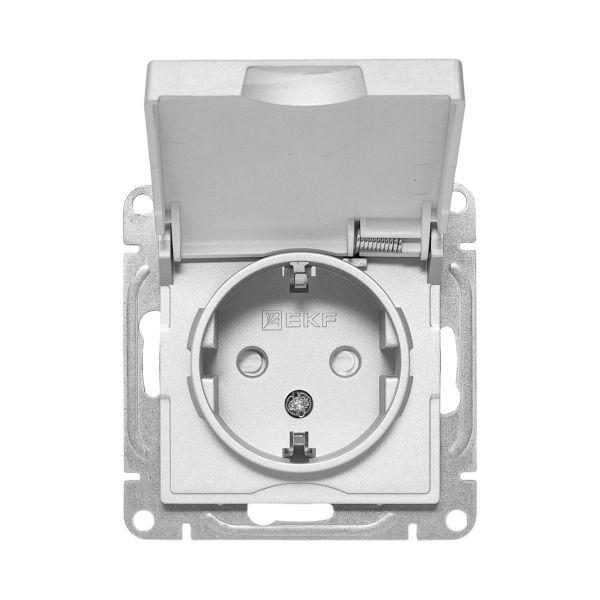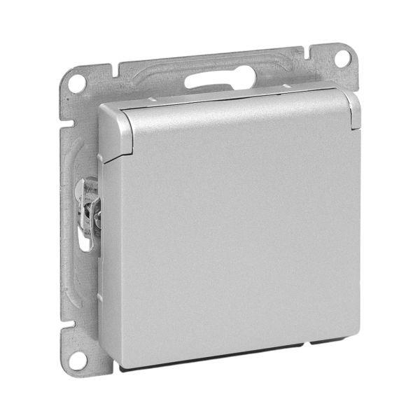 Эпика Механизм розетки 16А IP44 с заземлением со шторками c крышкой алюминий, код UP1-SOA-111-44, производитель EKF